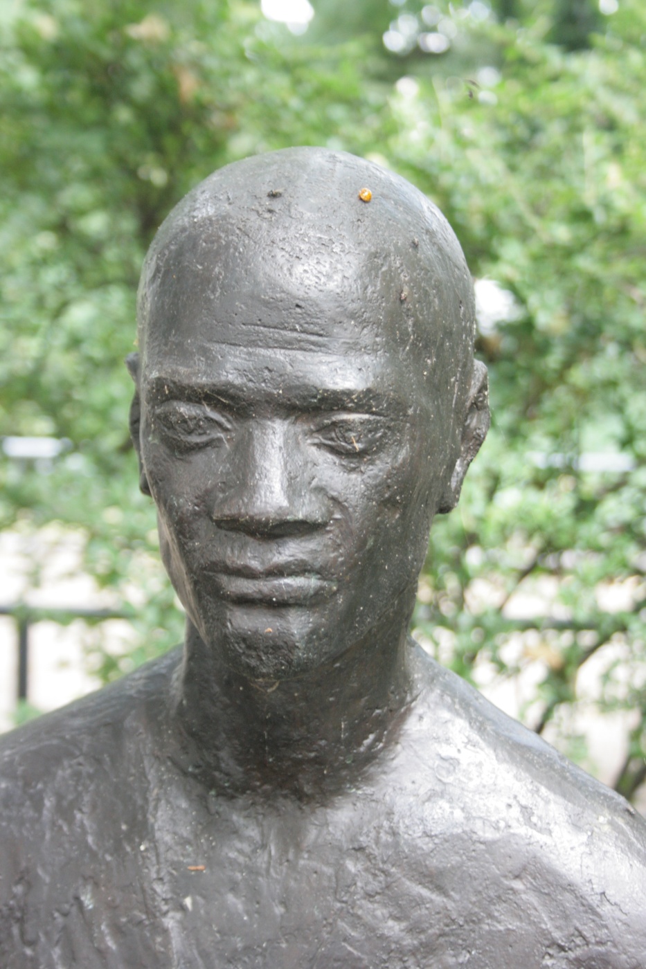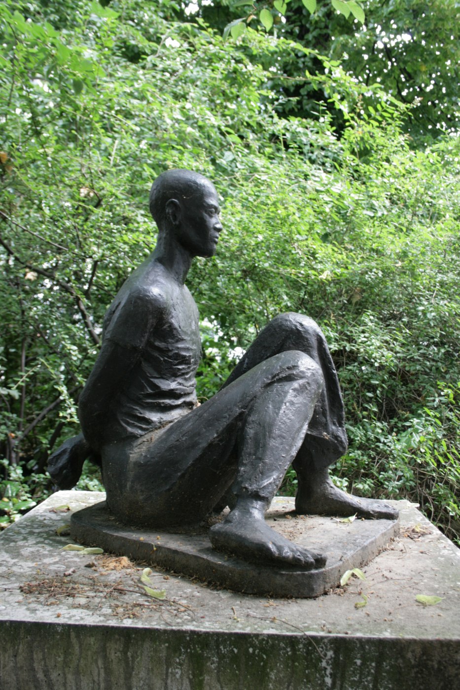 Bei dem Bildwerk handelt es sich um eine Darstellung des kongolesischen Freiheitskämpfers, Politikers und Premierministers Patrice Émery Lumumba. Er wird mit auf dem Rücken gefesselten Händen und auf dem Boden (durch eine annähernd trapezförmige Plinthe angedeutet) sitzend gezeigt, barfuß und mit einfacher Kleidung. Der Rücken ist betont gerade, der Blick geradeaus gerichtet, die Mimik ernst und starr. Die Figur ist realistisch, nur leicht stilisiert wiedergegeben, so dass Lumumba als Person erkennbar bleibt. An der Front des schlichten Betonsockels wurde eine Tafel mit den Erläuterungen zur Aufstellung dieser Plastik auf dem Platz appliziert.