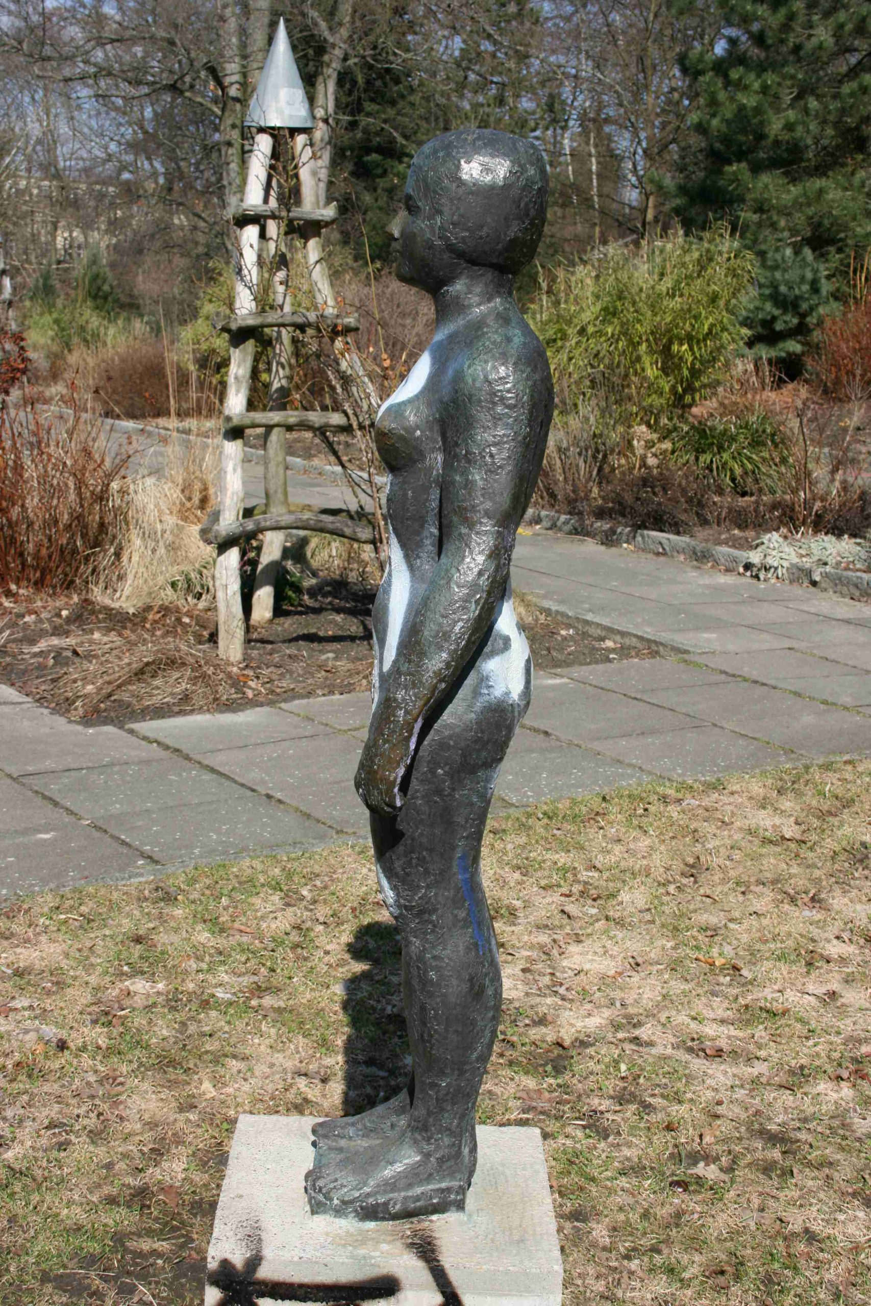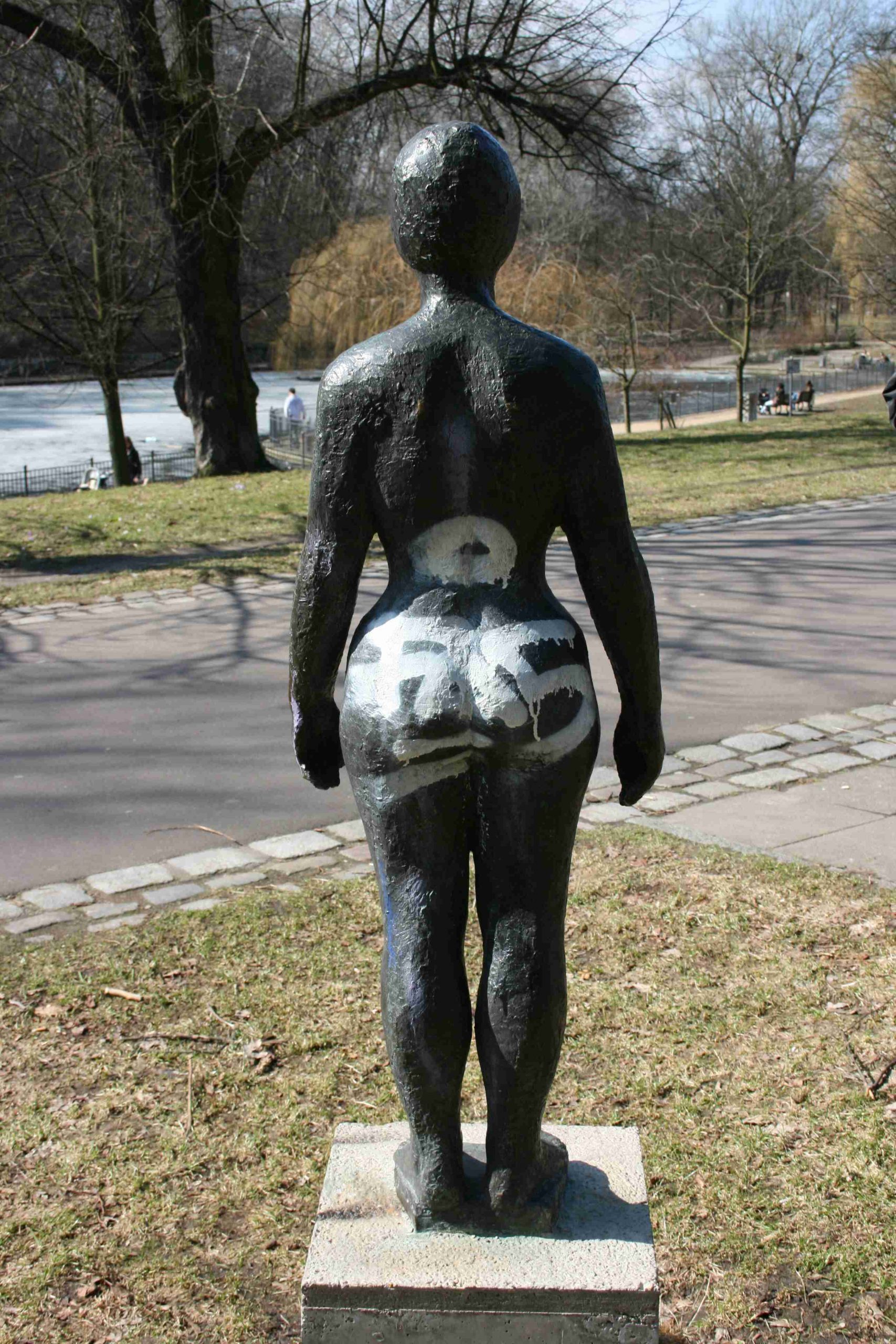 Die Figur stand, vor ihrer Umsetzung in den Volkspark Friedrichshain 2009, vor dem Schwimmbad an der Höchsten Straße, das 1972 errichtet worden und nach 2000 abgerissen worden ist. Danach befand sie sich auf dem Gelände des ehemaligen Hallenbades ein Supermarkt. Die Figur stand an der Fassade des Schwimmbads auf einem gemauerten Sockel. Der Bildhauer, Karl Lemke, war zu der Zeit der Entstehung der Figur Meisterschüler bei Gustav Seitz (Jörg Kuhn, Susanne Kähler). Heute ist die Figur eingelagert im Depot des Grünflächenamts.