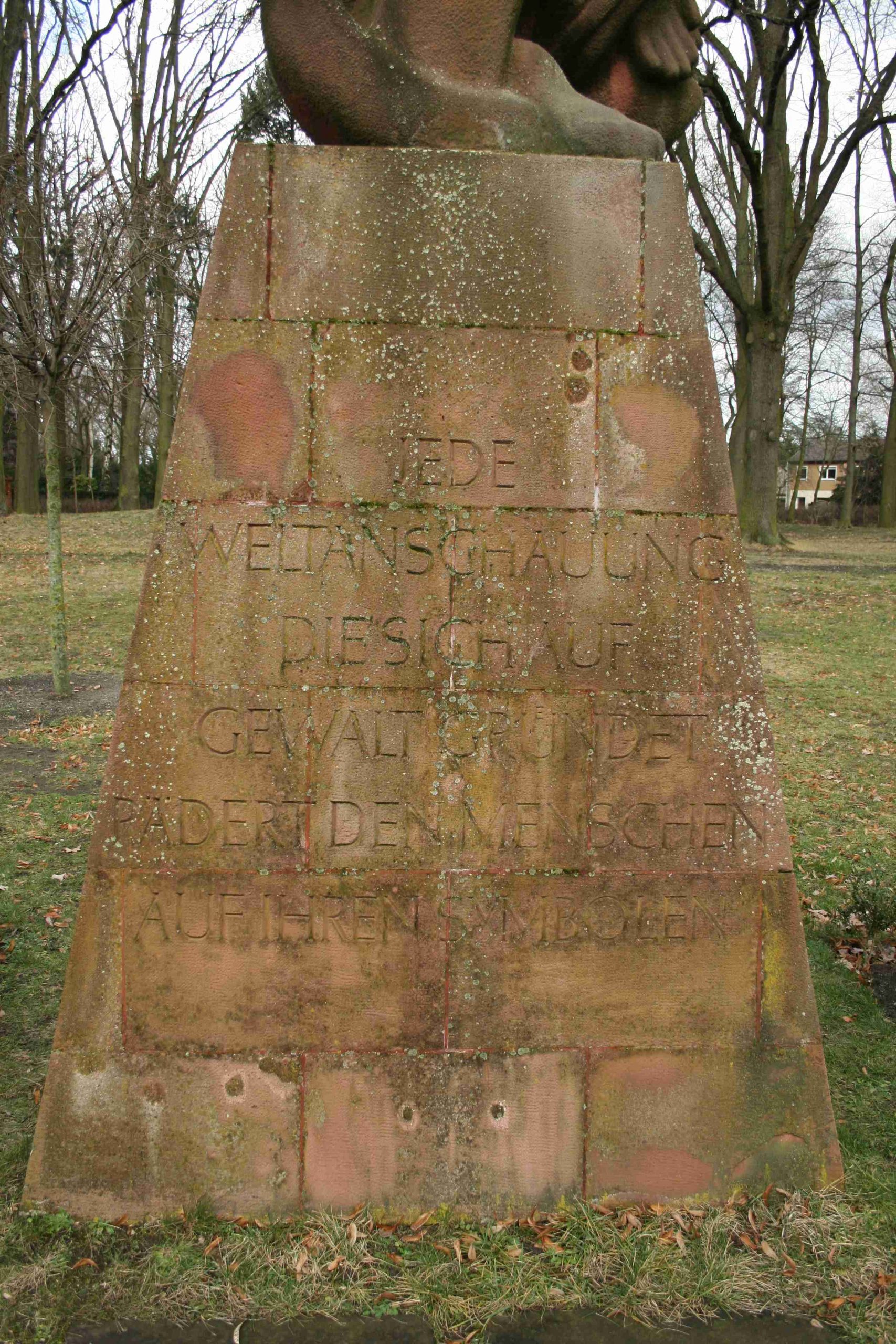 »JEDE / WELTANSCHAUUNG / DIE SICH AUF / GEWALT GRÜNDET / RÄDERT DEN MENSCHEN / AUF IHREN SYMBOLEN«