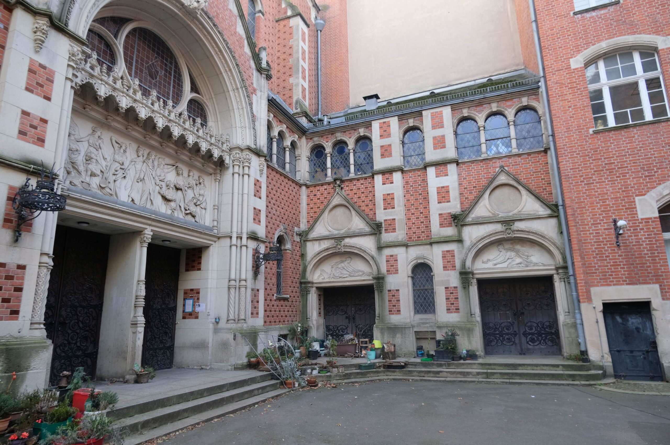 Der 1890 gegründete Evangelische Kirchenbauverein war u.a. für die Errichtung von Gotteshäusern in den neu entstehenden Stadtvierteln Berlins zuständig. Durch kleine, wohnortnahe Kirchengemeinden wollte man die Volksmassen besser erreichen. Von der Thomasgemeinde war bereits 1887 die Emmausgemeinde ausgegliedert worden. Sie zählte anfangs 70.000 Gemeindemitglieder, 1900 war deren Zahl auf mehr als 100.000 angestiegen. In der 1893 fertiggestellten Emmauskirche am Lausitzer Platz standen jedoch nur 2.100 Sitzplätze zur Verfügung. Um diesen kirchlichen Notstand zu entschärfen, wurde die Emmausgemeinde in vier neue Gemeinden aufgeteilt, eine davon war Emmaus-Süd, die spätere Martha-Kirchengemeinde. Deren Einzugsgebiet erstreckte sich auf den Bereich zwischen Görlitzer Güterbahnhof (dem heutigen Görlitzer Park) und Landwehrkanal und umfasste ca. 10 Häuserblöcke, in denen 2.000 bis 3.000 Menschen wohnten. Der Kirchenbau und das Pfarrhaus der Martha-Gemeinde entstanden nach Plänen des Architekturbüros Dinklage, Paulus & Lilloe in zwei Bauabschnitten. Auf dem rückwärtigen Teil des tief in die Blockinnenfläche reichenden Grundstücks wurde zunächst 1903/04 die Marthakirche erbaut. Die Grundsteinlegung erfolgte am 14. April 1903, am 29. Mai 1904 fand die Einweihung statt. Für die künstlerische Gestaltung der Kirche war eine „Kunstkommission“ zuständig. Der leitende Gedanke für die Darstellungen im Inneren und Äußeren der Kirche war „die Verherrlichung der Frauen der Bibel und Kirchengeschichte“ (Festschrift, 1904, S. 17). Das in den Blockrand eingefügte straßenseitige Pfarrhaus wurde ab 1909 erbaut und war 1912 fertiggestellt (Nicola Vösgen).