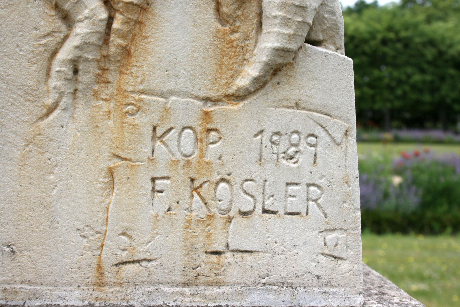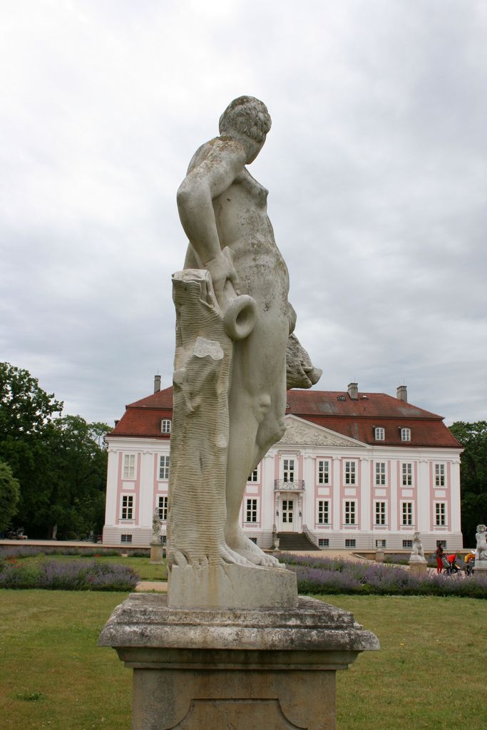 Im Rahmen der Wiederherstellung des Nordparterres am Schloss Friedrichsfelde wurden gegen Ende der 1980er Jahre Nachschöpfungen barocker Figuren aufgestellt. Sieben der barocken Vorbilder werden - mehr oder weniger zutreffend - dem Bildhauer Carl Philipp Glume (1724-1776), Mitglied einer im Berliner Raum bekannten Bildhauerfamilie - zugeschrieben. Glume hatte diese Skulpturen für den Schlosspark in Schwedt an der Oder gearbeitet (vgl. Torsten Freyhof: "Verwechselt und vergessen (Skulpturen aus der Werkstatt Glume)", in: Schwedter Jahreshefte, Heft 3, 2002, S. 19-27). Der "Meleager" scheint aber mit der im Schlosspark auf der Köpenicker Schlossinsel aufgestellten Meleager-Figur verwandt zu sein. Das barocke Original dieser späteren Nachschöpfung oder Kopie wird auf 1690 datiert und dürfte damit nicht oder nur auf dem Wege einer von Karl Philipp Glume - etwa für den Schlosspark in Schwedt geschaffenen Nachschöpfung auf diesen Künstler zurückgehen (Jörg Kuhn).