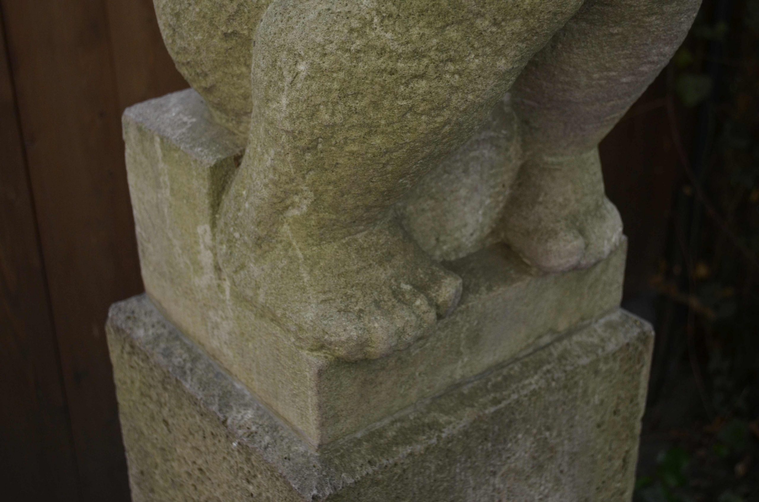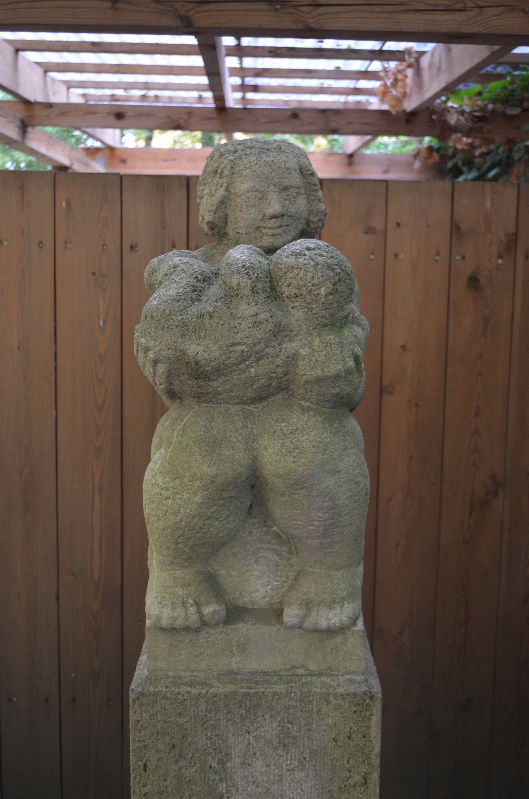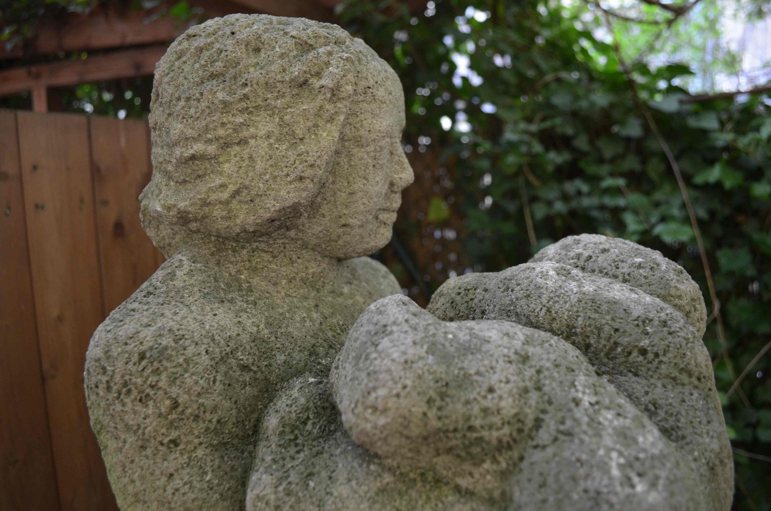 „Die Darstellung einer Mutter mit gedrungenen, kräftigen Körperformen wirkt kompositorisch in sich geschlossen. Den Säugling hält sie in anmutiger Haltung auf den Knien und hat ihm ihr Gesicht liebevoll zugewendet. Inmitten eines gartenarchitektonisch gut gestalteteten Wohnhofes kann diese Plastik ihren intimen Charakter gut zur Wirkung bringen.“ (Köcher, Schlegel, 1993, S. 66)