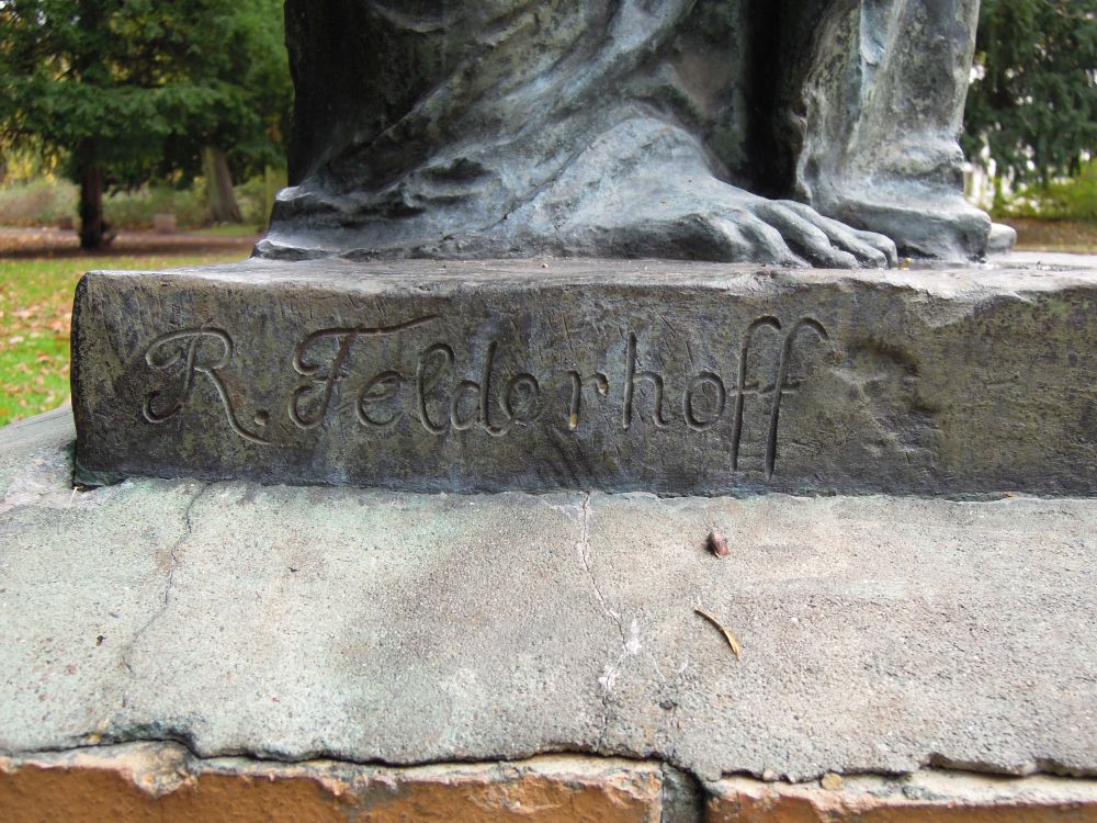 Die überlebensgroße Gruppe „Mutter mit Kind“ befindet sich seit 1976 im Brosepark, Sie steht auf einem Wiesenstück vor einer Baumkulisse. Der Standort ist gut gewählt. Vor den dunklen Bäumen hebt sich die helle Skulptur besonders deutlich ab. Reinhold Felderhoff schuf die Statue 1911, die wohl auch in diesem Jahr in der Schönholzer Heide, dem späteren Volkspark Schönholzer Heide, aufgestellt wurde. Seit der Jahrhundertwende war das Wald- und Heidegebiet in Niederschönhausen ein beliebtes Ausflugsziel. Dort stand Statue bis Mitte der 1950er Jahre. 1955 kam es zur einer Versetzung in das historische Zentrum von Pankow, aufgestellt vor dem Rathaus, Ecke Mühlenstraße. 1971 wurde sie dort entfernt und auf einem Abstellplatz im Bürgerpark Pankow zwischengelagert. Seit 1976 steht das Kunstwerk im Brosepark. Die Plastik im Brosepark aufzustellen geschah vermutlich im Hinblick auf das Gebäude der Mütterberatung, das sich damals links vom Brosehaus an der Dietzgenstraße befand. Der Brosepark, der zum Sommerhaus des Berliner Bankiers und Kunstsammlers Wilhelm Brose (gest. 1871) gehörte, entstand seit 1820. Die Gemeinde Niederschönhausen kaufte 1920 den Park, der bis dahin im Besitz der Familie Brose war. Der Park wurde 1985 bis 1987 umfassend rekonstruiert (Jürgen Tomisch).