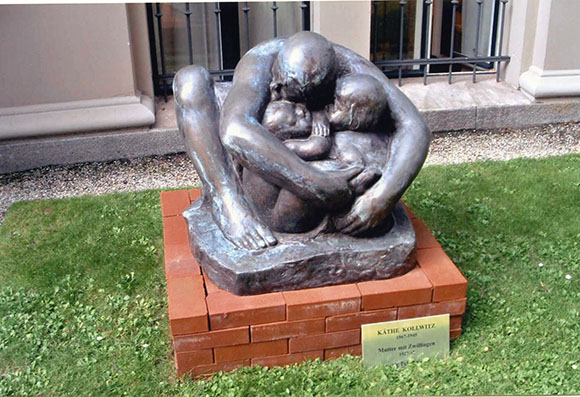 Die Gruppe entstand nach langjähriger Beschäftigung der Künstlerin mit dem Thema „Mutter und Kind“. 1923 wurden ihre Enkeltöchter geboren, Kollwitz entwickelte die Initiative zu dieser Gruppe, einer ausdrucksstarken Komposition zum Thema „Schutz“ und „mütterliche Kraft“, die als letzte große Anstrengung der Künstlerin auf dem Gebiet der Plastik gilt. Die Aufstellung im Vorgarten des Hauses Fasanenstraße 24 könnte vorübergehend sein. In der Villa Fasanenstraße 24 ist zurzeit (2018) noch das Käthe-Kollwitz-Museum untergebracht. Der für den Geheimen Kommerzienrath H. Schirmer entstandene Bau stammt aus dem Jahr 1871, ausgeführt durch den Maurermeister H. Mertens. Der Garten wurde in den 1980er Jahren wieder hergestellt. Er bildet als Gartendenkmal ein Ensemble mit dem Nachbargarten Fasanenstraße 25 (Villa Grisebach, errichtet 1891-1892 von dem Architekten Hans Grisebach) und wird mit modernen Plastiken und Skulpturen von der Villa Grisebach aus bestückt. Einige dieser Werke sind dauerhaft dort aufgestellt, andere werden ausgetauscht. Die Zukunft des Käthe-Kollwitz-Museums ist aktuell noch ungewiss (Susanne Kähler).