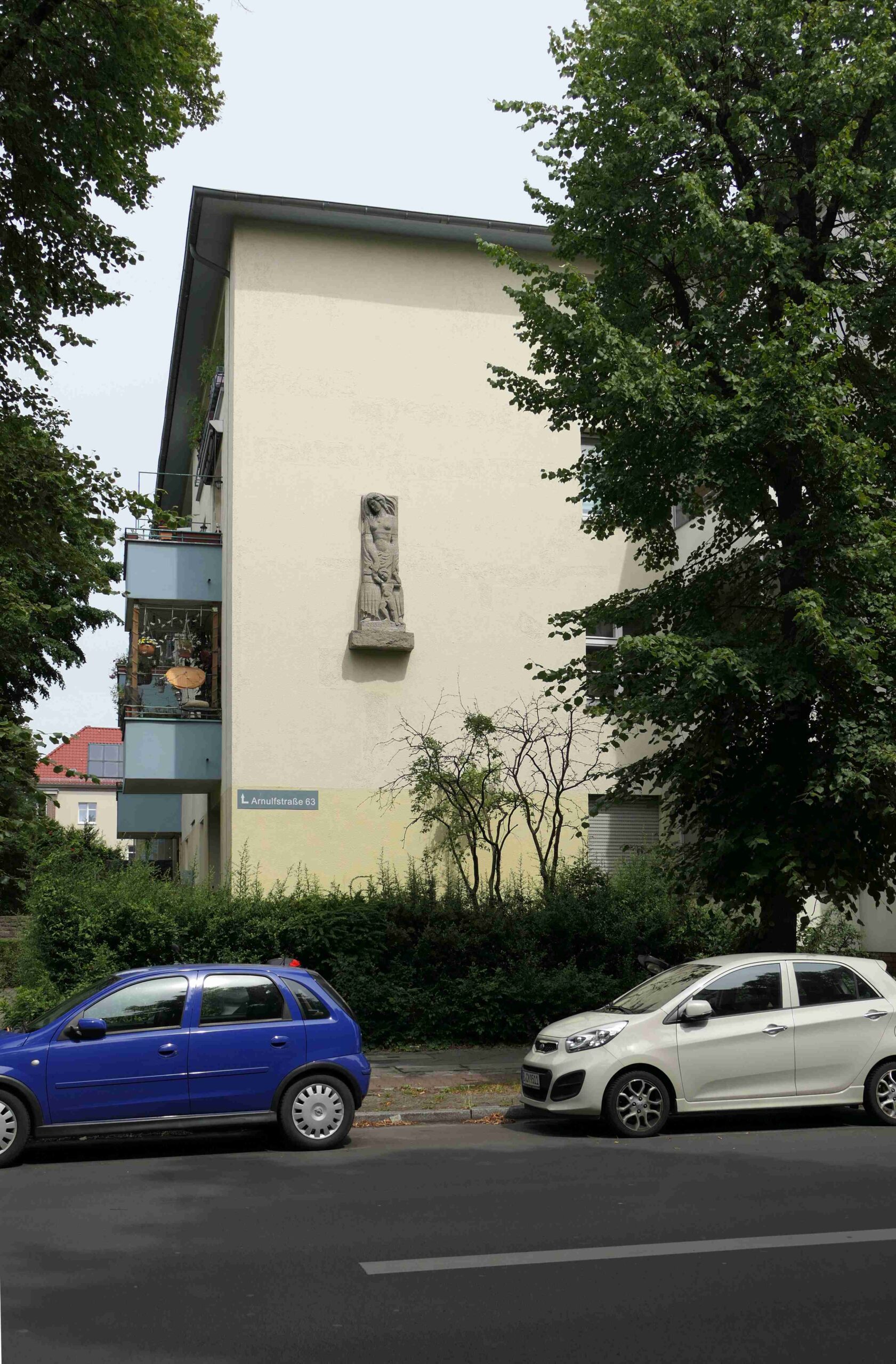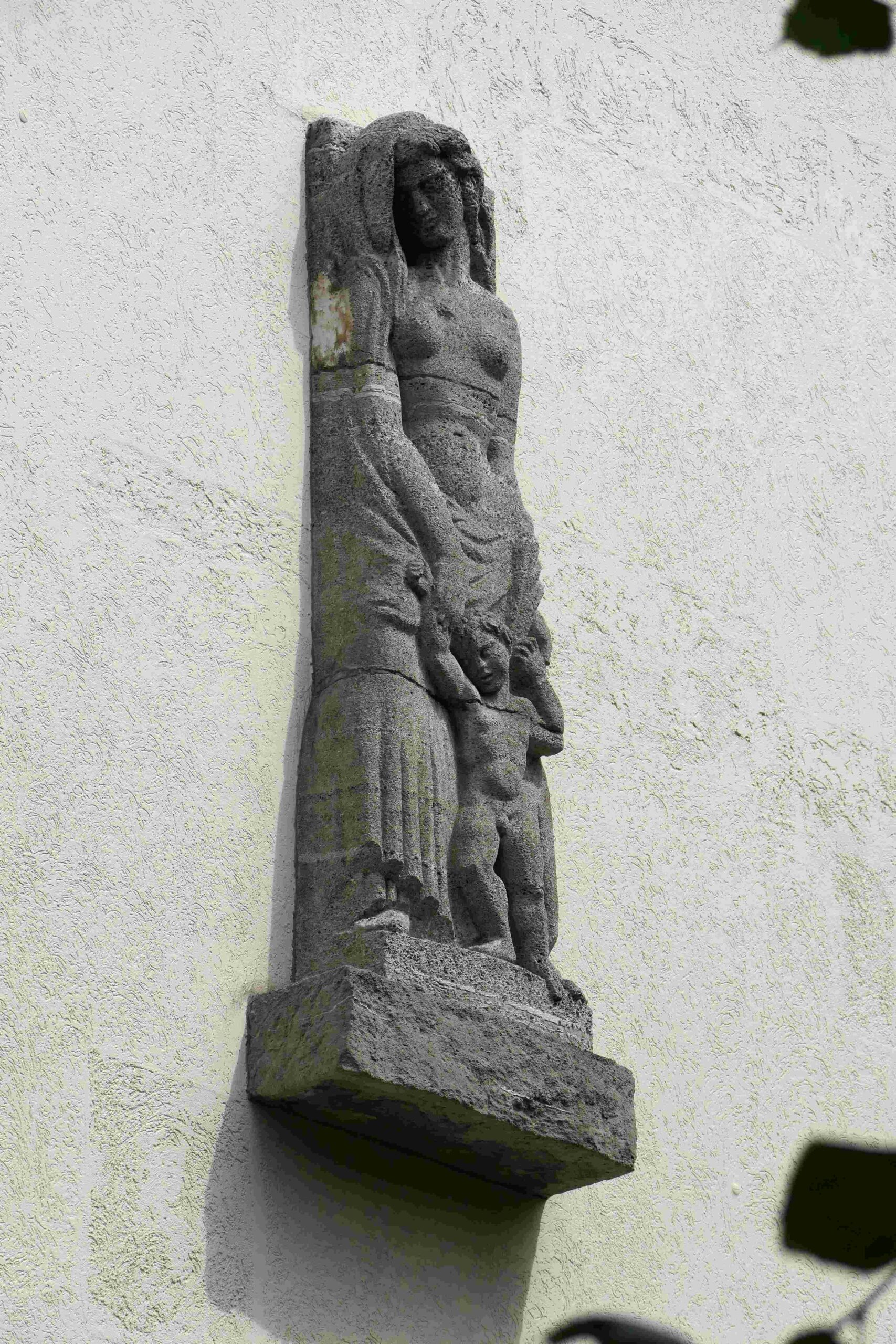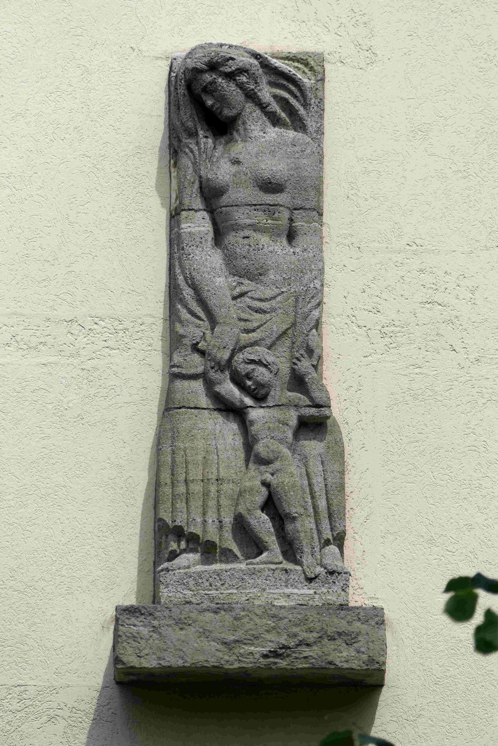 An der südlichen Fassade des Gebäudes Arnulfstraße 63 befindet sich ein hochrechteckiges Relief mit der überlebensgroßen Darstellung einer Mutter-Kind-Gruppe. Die barbusige Frau ist dem Betrachter frontal zugewandt, mit beiden Händen hält sie die hoch erhobenen Arme des vor ihr stehenden unbekleideten Knaben (Nicola Vösgen).