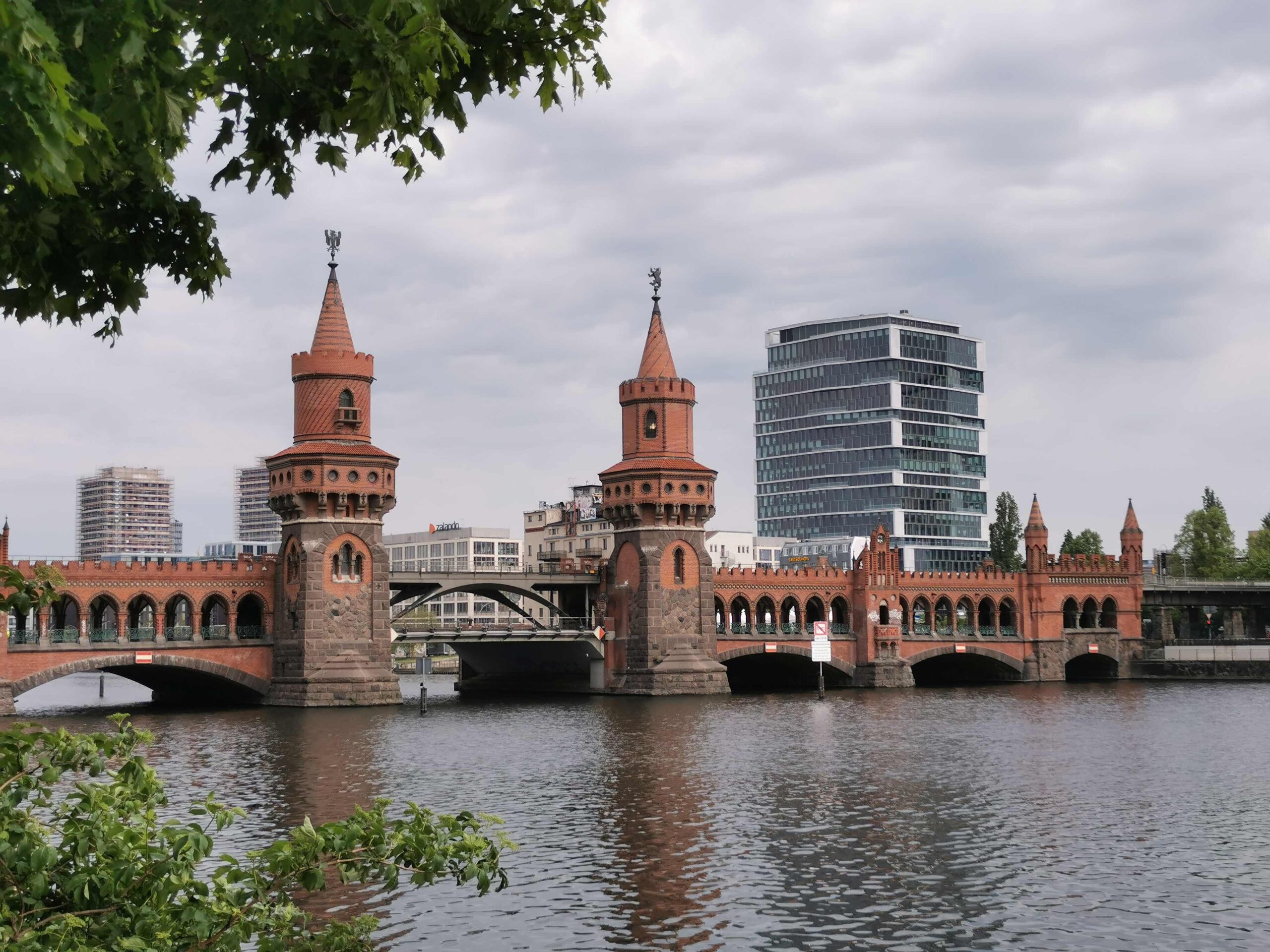 Anlässlich der Berliner Gewerbeausstellung, die 1896 auf dem Gelände des heutigen Treptower Parks stattfand, sollte die hölzerne Brücke zwischen Kreuzberg und Friedrichshain ersetzt werden. Die Firma Siemens & Halske bekam 1893 die Genehmigung zum Bau einer die Spree überquerenden Eisenbahnbrücke, die erstmals als kombinierten Eisenbahn- und Straßenbrücke erbaut werden sollte. Zwischen 1894 und 1895 entstand das Bauwerk im märkischen Backsteinstil nach Plänen von Otto Stahn (1859 - 1930). Am 17. Dezember 1895 konnte der untere Bereich der Brücke in Betrieb genommen werden. Die Hochbahngleise der ersten Berliner U-Bahn-Strecke (heute: Linien U1 und U3) auf der oberen Ebene waren 1902 fertiggestellt. Am 23. April 1945 sprengten deutsche Truppen den mittleren Gewölbebogen der Oberbaumbrücke, um den Vormarsch der russischen Armee aufzuhalten. Zahlreiche Pfeiler und die beiden Türme wurden dabei schwer beschädigt. Bereits kurz nach Kriegsende fuhr die U-Bahn über die instandgesetzte Brücke wieder bis zum Bahnhof Warschauer Brücke. Nach dem Mauerbau am 13. August 1961 war die Oberbaumbrücke für den gesamten Verkehr einschließlich der U-Bahn gesperrt. Während der Teilung Berlins markierte die Oberbaumbrücke die Grenze zwischen Kreuzberg und Friedrichshain und wurde nur noch als Grenzübergang für Fußgänger genutzt. Nach der deutschen Wiedervereinigung ist die Brücke in den Jahren 1992 bis 1994 nach Plänen des spanischen Architekten Santiago Calatrava (*1951) instand gesetzt worden (Nicola Vösgen).