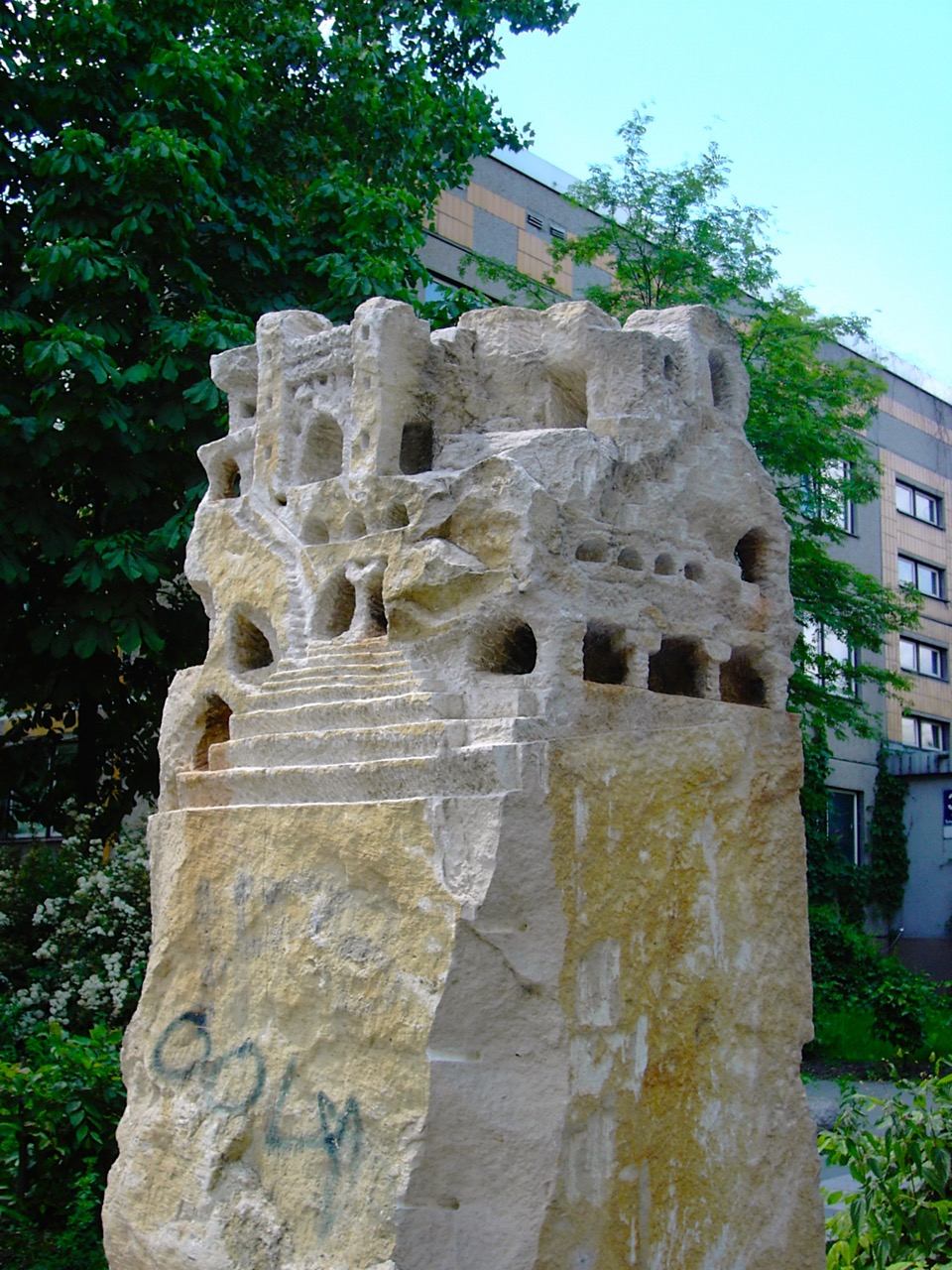 Die Skulptur des Berliner Bildhauers Christof Glamm, einem ausgebildetem Steinmetz, wurde von der Gesellschaft der behutsamen Stadterneuerung (STERN) im Rahmen einer künstlerischen Neugestaltung des Teterower Rings im Wohngebiet Spree-Viertel in Auftrag gegeben. Der Künstler schuf in einem zehn-tägigen Bildhauerprojekt gemeinsam mit Schüler*innen einer 10. Klasse der Erasmus-von-Rotterdam Oberschule die Kalkstein-Skulptur. Die künstlerische Konzeption sowie das Motiv, eine aus dem Fels gehauene Burgenlandschaft, ging aus dem Dialog zwischen den Schüler*innen mit dem Künstler hervor. Es soll einen Kontrast zu der umgebenden funktionalen Architektur der Wohnanlage bilden. Glamm lebt und wirkt seit 1978 in Berlin. Seit 2004 betreut und leitet er Projekte an Berliner Schulen zum Thema Stein und Bildhauerei.