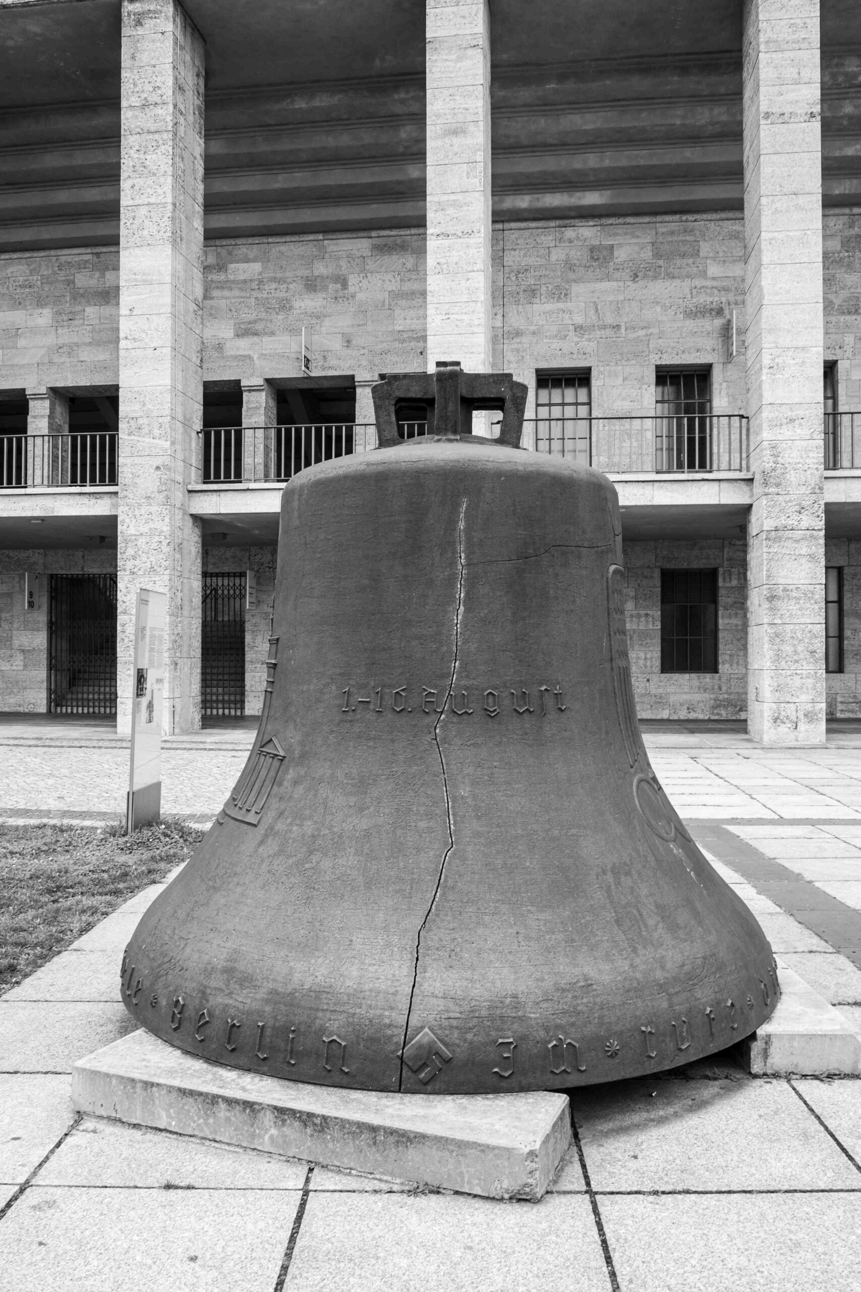 Die aus dem Glockenturm am Maifeld stammende Stahlglocke trägt als Gestaltungselemente ihrer Oberfläche eine erhabene Zeichnung mit einer stilisierten Darstellung des Brandenburger Tores und eine Datums-Inschrift, zwei Hakenkreuze (nachträglich geschlossen), einen Reichsadler und auf dem Glockenring in Fraktur eine weitere Inschrif (Susanne Kähler).