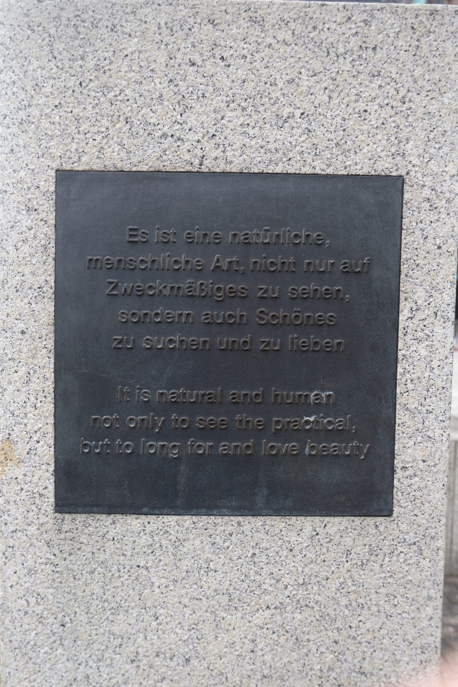 »Es ist eine natürliche, / menschliche Art, nicht nur auf / Zweckmäßiges zu sehen, sondern auch Schönes / zu suchen und zu lieben / It is natural and human / not only to see the practical, / but to long for and love beauty «