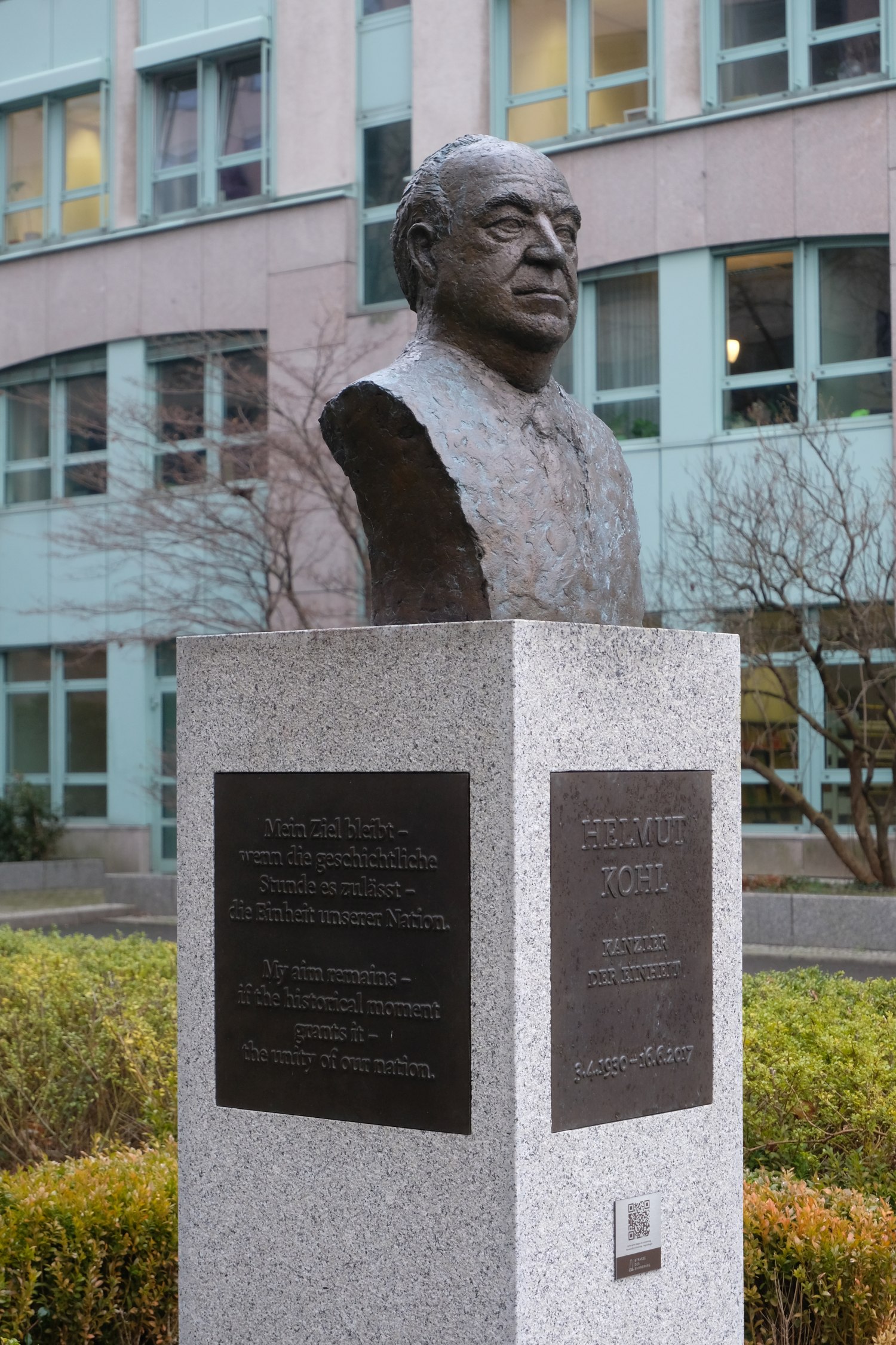 Die Porträtbüste von Helmut Kohl ist frei auf einer Vierkantstele aus Granit montiert. Der ehemalige Kanzler wird poträthaft und naturnah bis zur Brust in Anzug, Hemd mit Stehkragen und einer Krawatte dargestellt. Das Porträt ist frontal ausgerichtet, der Kopf jedoch leicht nach rechts gedreht. Die Oberfläche ist bewegt impressionistisch modelliert. An drei Seiten der Stele sind Inschriftentafeln aus Bronze montiert, sowie eine kleine Barcode-Plakette an der Frontansicht (Pauline Ahrens).