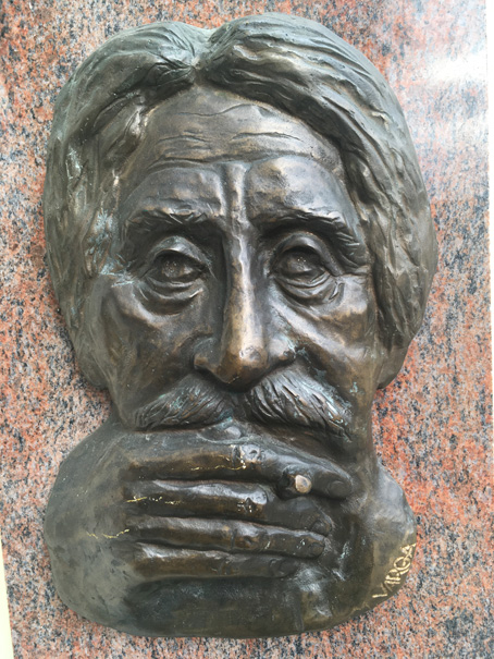 Das Porträtrelief wurde als Gedenktafel für den britischen Drehbuchautor und Schriftsteller George Tabori (1914-2007) geschaffen. Die Gedenktafel am Schiffbauerdamm ist nur unweit des Berliner Ensembles, wo zahlreiche Stücke Taboris inszeniert wurden.