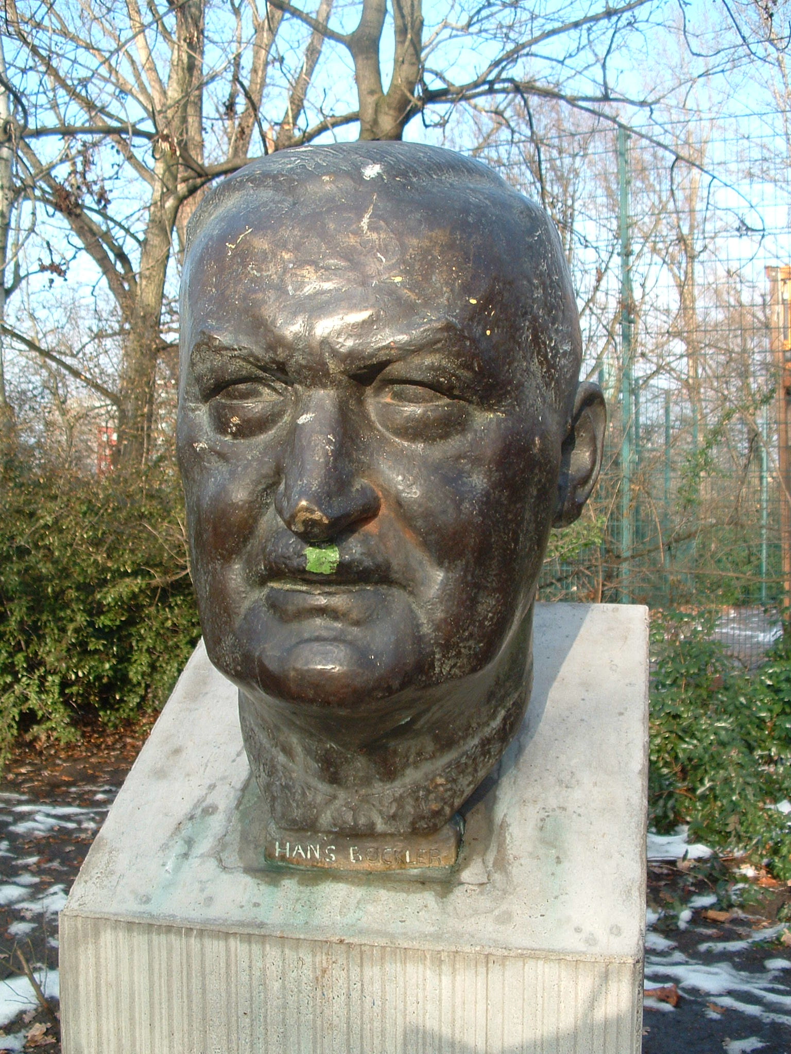 »Hans Böckler / 1875-1951 / Der Metallarbeiter Hans Böckler, geboren am 26. Februar 1875, / hat die Entwicklung der deutschen Gewerkschaftsbewegung / maßgeblich mitgeprägt. Seit 1928 war er Mitglied der SPD- / Reichtagsfraktion. Nach 1933 wurde Hans Böckler mehrmals / verhaftet und stand unter ständiger polizeilicher Kontrolle. / Nach dem 20. Juli 1944 versteckte er sich und lebte illegal. Im / Nachkriegsdeutschland setzte er sich für die gründung des / Deutschen Gewerkschaftsbundes ein und wurde 1949 zum / ersten Vorsitzenden gewählt. / Er fungierte auch als Vizepräsident des "Internationalen / Bundes freier Gewerkschaften" in London und setzte sich / besonders für die Paritätische Mitbestimmung in der / Montanindustrie der Bundesrepublik Deutschland ein. / Er starb am 16. Februar 1951 in Köln. / Deutscher Gewerkschaftsbund/ Bundesvorstand«