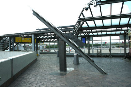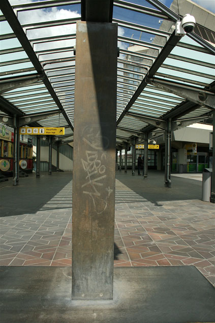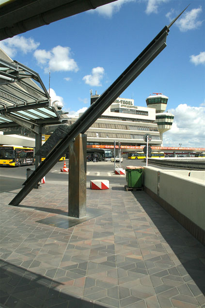 Die abstrakte Plastik mit dem Titel „Prototyp“ steht auf der Zufahrtsebene vor der Haupthalle des Flughafen Tegel. Das Objekt markiert den Aufgang mit der Rolltreppe zum Parkplatz. Es ist zusammengefügt aus verschiedenen Materialien und ist auf zwei Bodenplatten, die auf dem gepflasterten Boden der Zufahrtsebene eingelassen sind, montiert. Auf der vorderen Platte steht ein vierkantige, vertikal ausgerichtete Metallstele mit quadratischer Grundfläche, die am oberen Ende schräg zugeschnitten ist. Auf dieser liegt, diagonal gen Himmel gerichtet, ein Doppel-T-Träger. Die Enden sind schräg zugeschnittenen Enden. Das untere Ende ist auf einer zweiten Metallplatte am Boden befestigt. Diese stabilisiert das Objekt. Auf dem Träger ist ein flaches Metallblech montiert, welches identisch ausgerichtet ist, den Träger jedoch überragt. Auf der Platte wiederum ist ein weiteres Element, ein nach oben spitz zulaufendes Rohr aus Edelstahl, befestigt, das mit der Spitze ebenfalls gen Himmel ragt. Dieses Element wird auf der Plastik mit einem Bronzeelement festgehalten, welches die Form eines nach hinten gerichteten Flügels hat. Die Oberfläche ist uneben. Das Material überlagert sich im vorderen Teil. Diese dynamische Oberflächenstruktur erinnert an eine Schieferplatte. Das Objekt erzeugt durch den Einsatz unterschiedlicher Materialien und verschiedenen Verarbeitungsformen eine Spannung und lädt zum näheren Betrachten ein. Die Gestalt erinnert an ein abstrahiertes Flugzeug, das im Begriff ist, in den Himmel zu steigen. Das Material weist unterschiedliche Korrosionszustände auf. Auf der vorderen Bodenplatte ist eine Bronzeplakette mit Objektinformationen angebracht (Layla Fetzer).