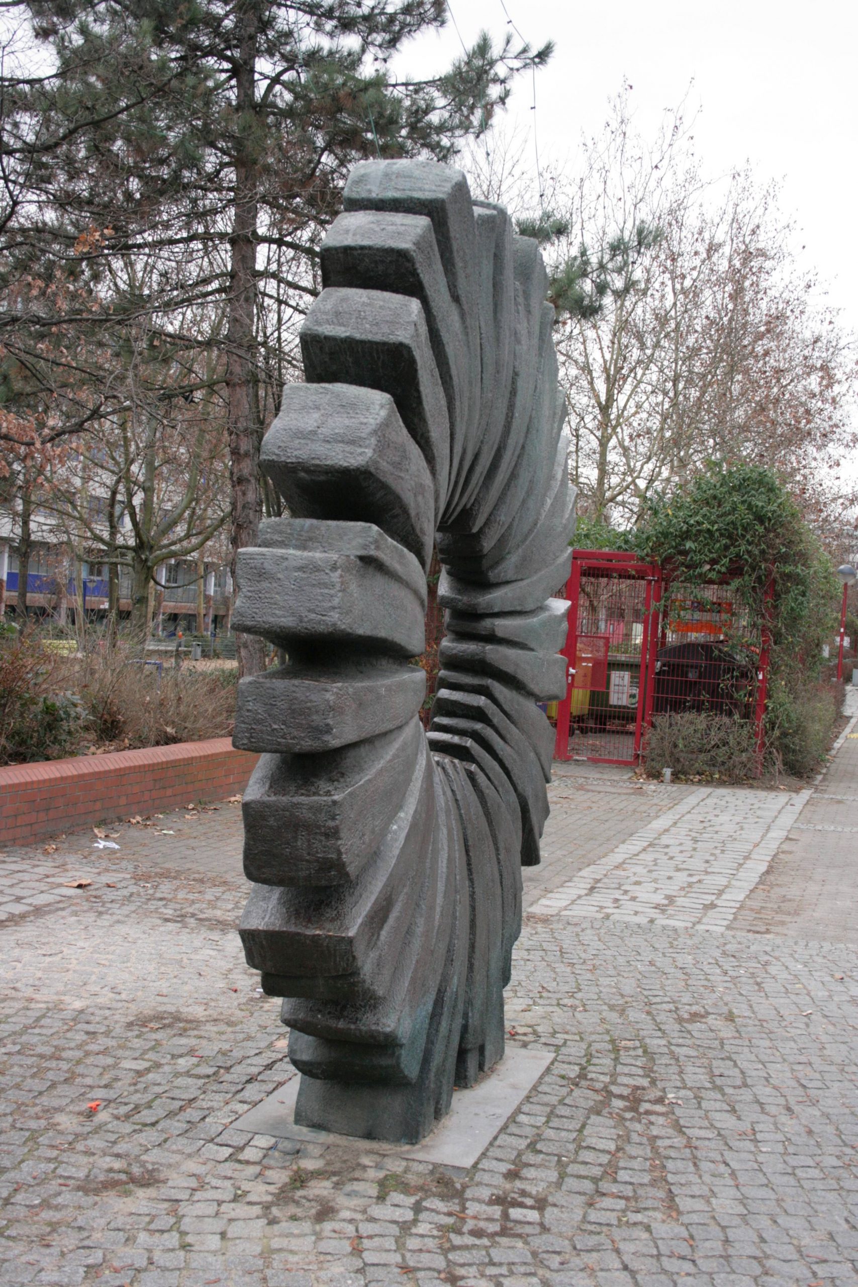 Die Bronzeplastik Trenkels wurde vermutlich etwa zeitgleich mit der Wohnanlage zu deren Ausgestaltung in Auftrag gegeben. Alfred Trenkel ist ein Künstler, der im Zeitraum Mitte der 1950er Jahre bis Anfang der 1980er Jahre viele Werke im öffentlichen Raum Westberlins schuf, angefangen mit schlichten Gedenksteinen über Tierfiguren bis hin zu abstrakten Objekten. Er hatte in der Zeit zwischen 1947 und 1949 an der Hochschule für Angewandte Kunst in Weissensee und anschließend an der Akademie in Stuttgart studiert, bevor er bis 1954 eine Steinbildhauerlehre in Berlin absolvierte. Trenkel war freischaffender Bildhauer in Berlin, arbeitete aber auch am Wiederaufbau des Charlottenburger Schlosses und des Reichstags mit (Susanne Kähler, Jörg Kuhn).