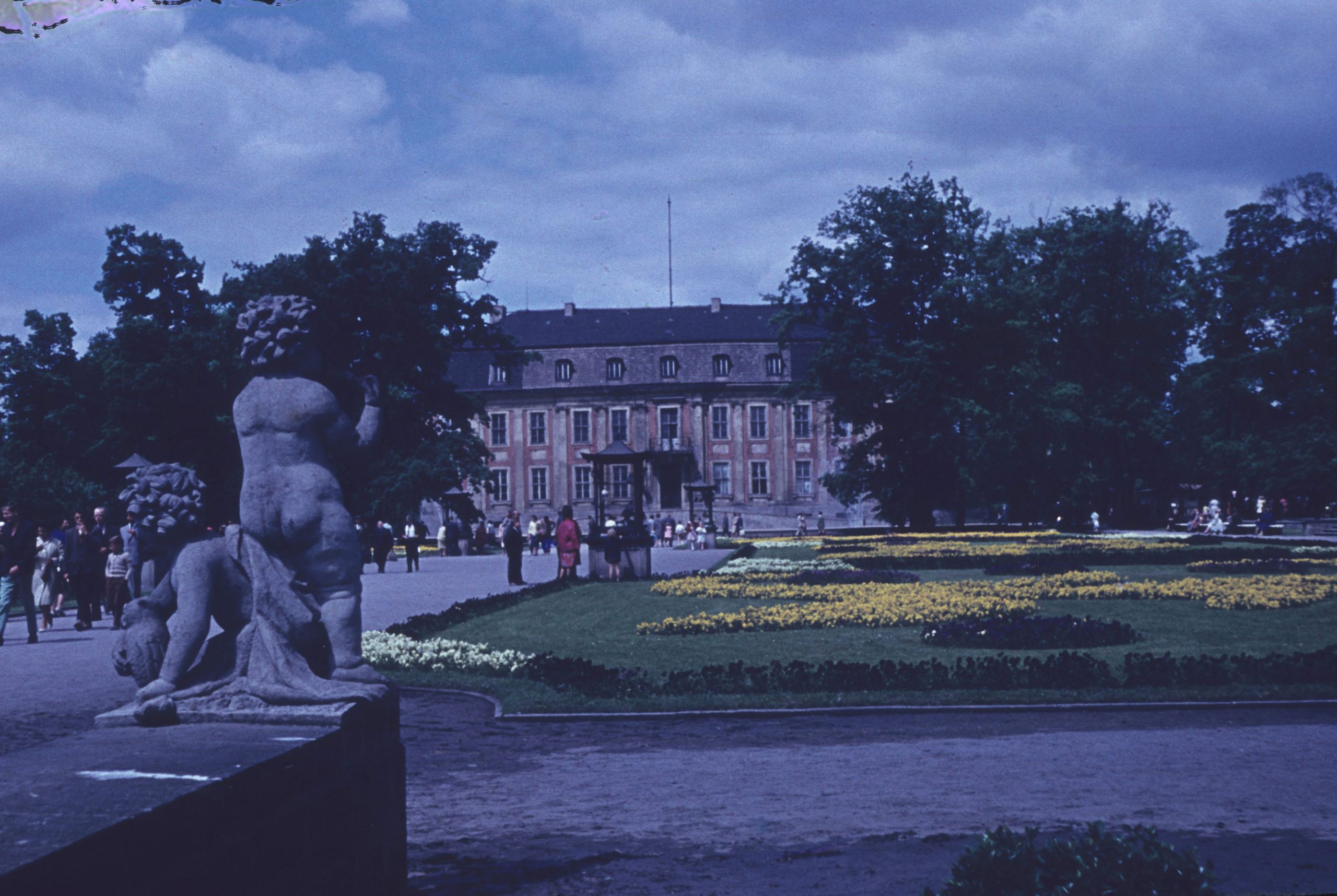 "Am Ausgang des Südparterres auf den Wangen der Treppe sind zwei Puttengruppen aus Sandstein, wiederum aus Gerhard Benschs Bildhauer-Kollektiv stammend, postiert. Die Nackedeis von barocken Körperformen - auf das Schloß abgestimmt - halten Symbole der Kunst (Theater, Musik) und Wissenschaft (Eule!) in ihren Händen, um darauf hinzuweisen, daß der Tierpark sich als Kulturzentrum neben Wissenschaft auch für die schönen Künste versteht. Lustigerweise hält das eine Knäblein seine Panflöte in doppelter Hinsicht falsch an die Lippen. Die beiden Gruppen wurden 1956 aufgestellt" (Heinrich Dathe, 1980, S. 12-13). "Anschließend seien noch Kunstwerke vorgestellt, für die bislang selbst z. T. mit Hilfe von Presserecherchen keine Autorenschaft zu ermitteln war. So finden wir an der Pelikan-Anlage zwei Sandstein-Puttengruppen, die nach der Restaurierung in Berliner Werkstätten unter Leitung von Gerhard Bensch (...) im Jahre 1956 aufgestellt wurden. Eine Gruppe symbolisiert (...) Musik und Wissenschaft" (E. Matthies, 2009, S. 70). Die Texte lassen verschiedene Entstehungsszenarien zu. Vermutlich handelt es sich bei beiden Gruppen um Nachschöpfungen nach barocken Vorbildern beziehungsweise nach im barockisierenden Sinne teilergänzten barocken Vorbildern (Jörg Kuhn).