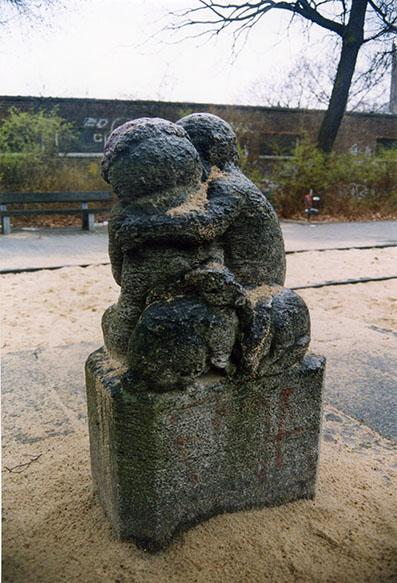 Der Bildhauer des Denkmals ist unbekannt, ebenso das genaue Entstehungsdatum und der ursprüngliche Kontext in dem die Gruppe gestanden hat. Denkbar ist, dass sie von einer Brunnenanlage oder einer umfangreicheren Parkgestaltung stammt. Der Kontext wird einen starken Bezug zum Thema Kinder gehabt haben. Die Verwendung des stark strukturierten Materials Muschelkalk ist charakteristisch für Reformkunst in der Zeit vor dem Ersten Weltkrieg. Die stark anrührende Darstellung der puttenartigen Kinder verweist noch auf den Neubarock des 19. Jahrhunderts bzw. auf Kinderdarstellung im Jugendstil. Eine Datierung auf um 1910 scheint bezugnehmend auf Materialwahl und Formulierung der Gruppe statthaft. Der Künstler der Figurengruppe ist im Umkreis des von 1896 bis 1924 amtierenden Stadtbaumeisters Ludwig Hoffmann und des vielfach im Bereich der Bau- und Brunnenplastik tätigen Georg Wrba zu suchen (Jörg Kuhn, Susanne Kähler).