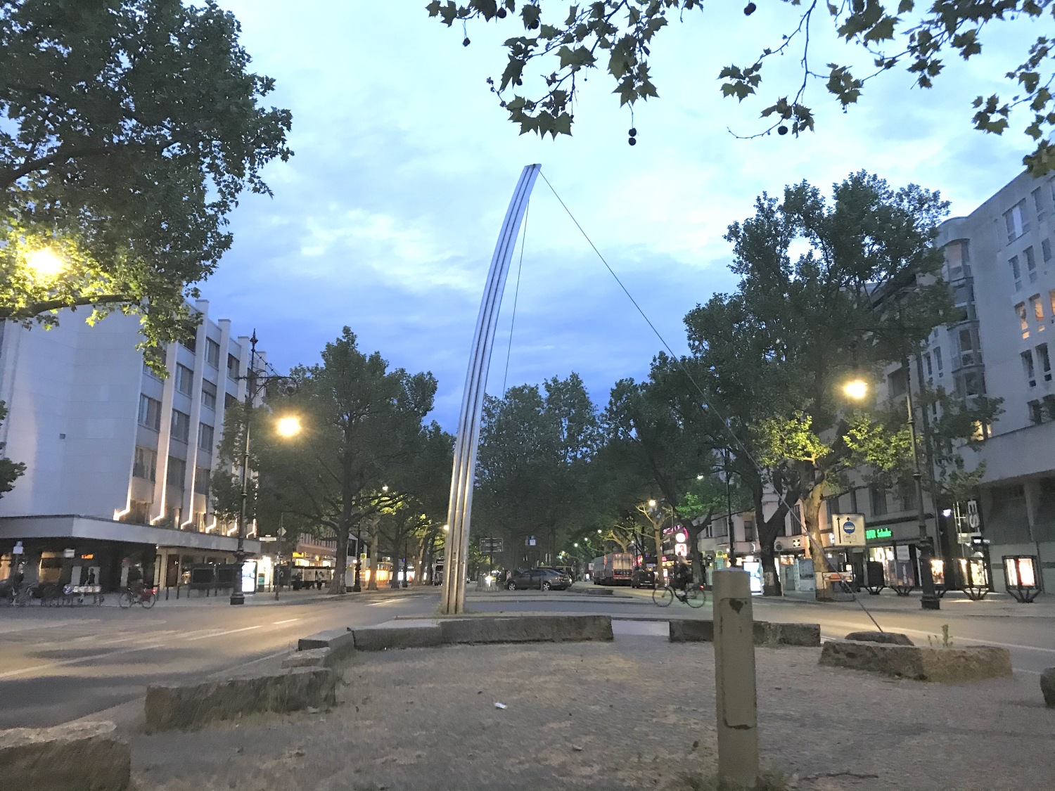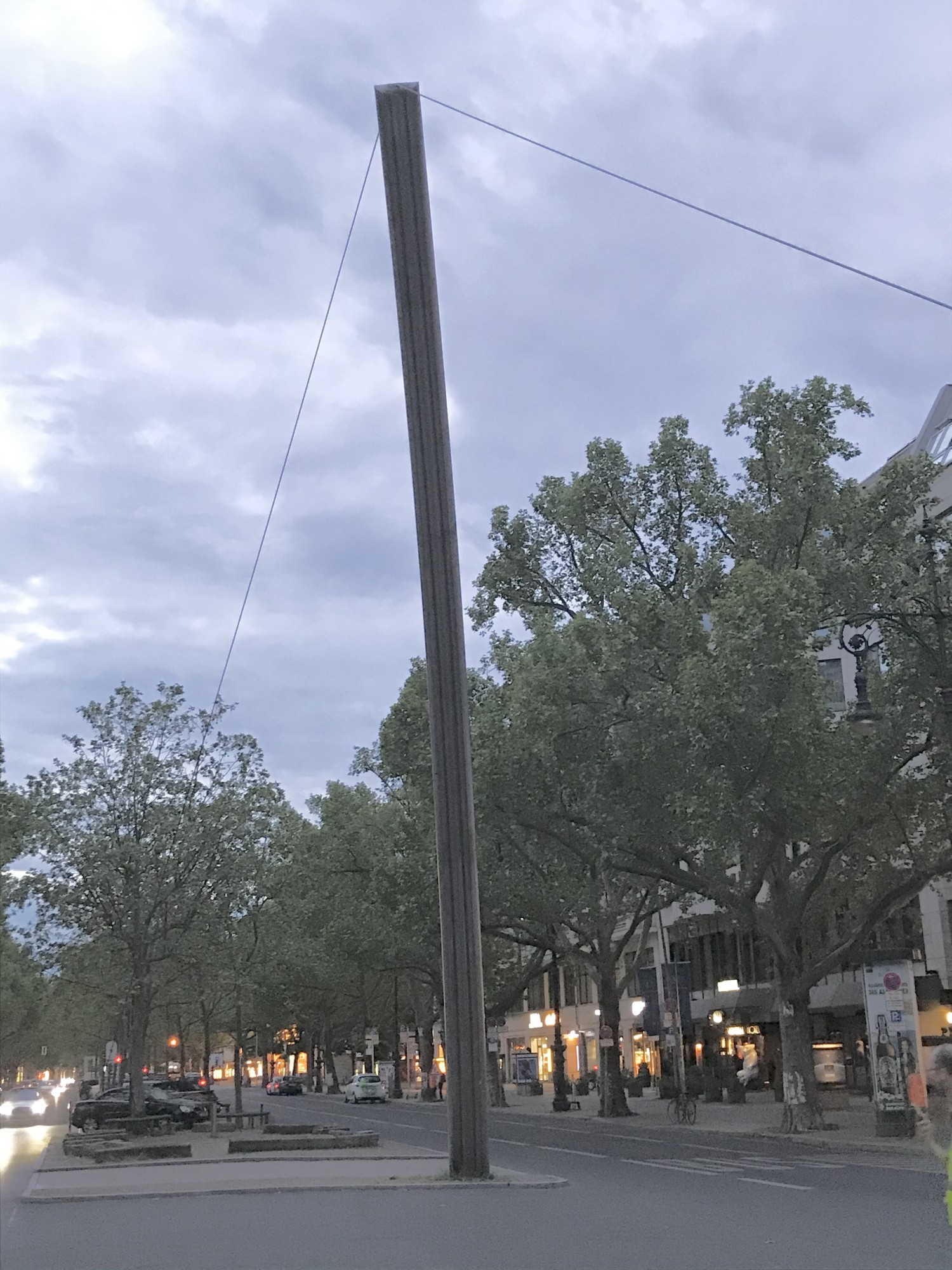 dargestellt. Durch die Transparenz der Pyramide wirkt die ganze Skulptur, als würde sie über dem Kurfürstendamm schweben. Auf den ersten Blick erkennt man nicht direkt, dass es sich um eine Skulptur handelt, da sie sehr passiv in das Geschehen des Kurfürstendamms eingreift und sich optisch kaum in das Auge des Betrachters