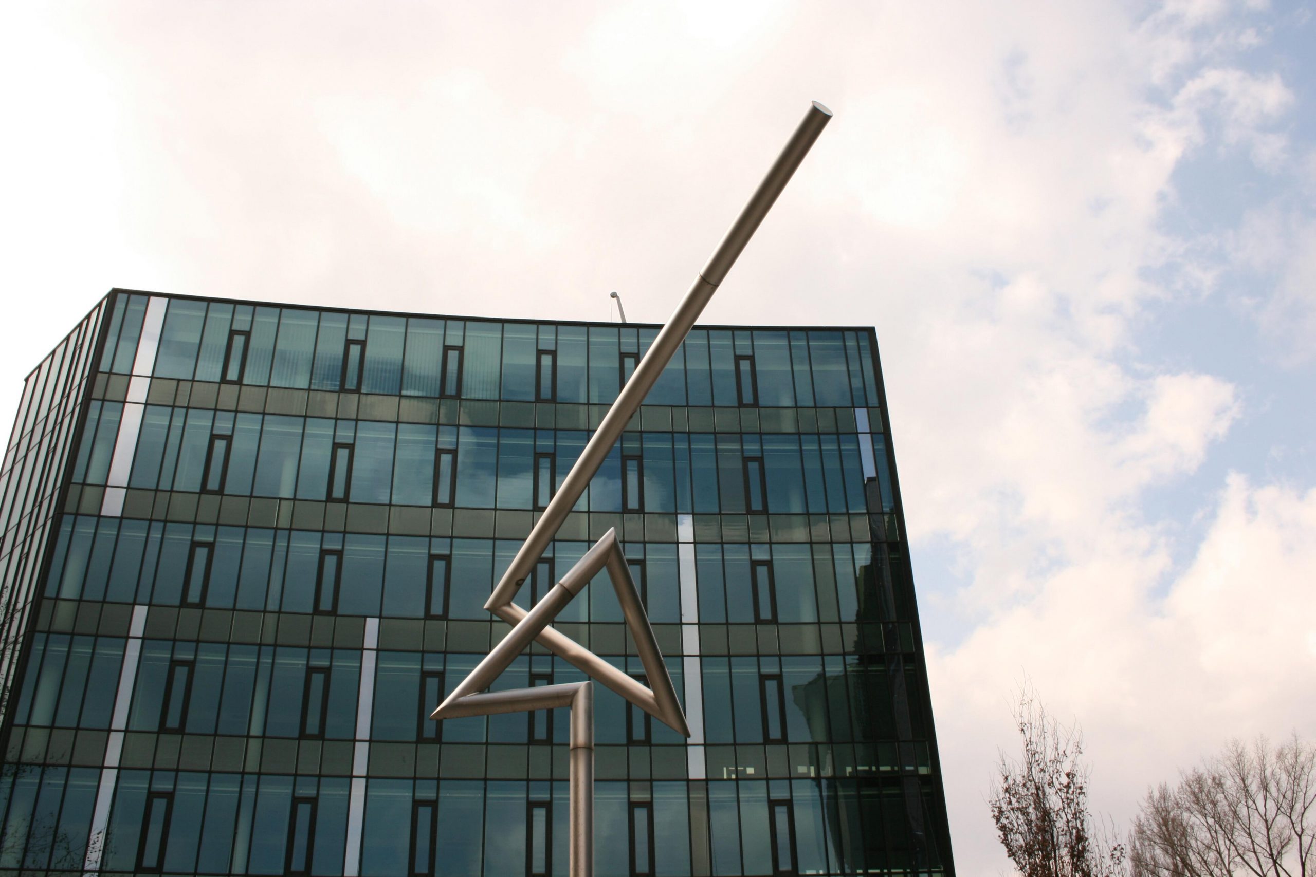 in den Boden eingelassenes, senkrecht nach oben ragendes Stahlrohr, dem drehbar gelagert ein weiteres Stahlrohr aufgesetzt ist, das im rechten Winkel abgeknickt ist und auf das die übrigen drehbar gelagerten Rohre mit ihren unterschiedlichen Winkeln aufgesteckt sind