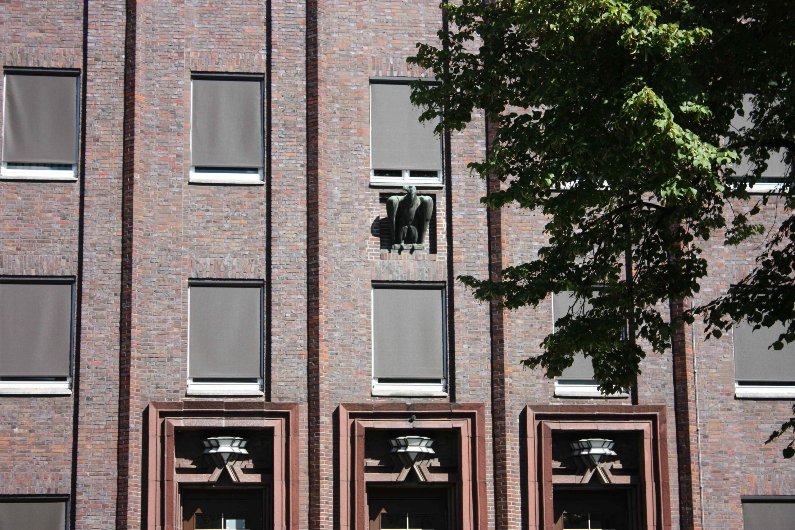 Der Reichsadler wurde im Zuge der Errichtung des Reichspostzentralamtes zwischen 1926 und 1930 von dem österreichischen Bildhauer Josef Thorak (1889-195) gestaltet. Dieser war zusammen mit dem Architekten Albert Speer an der Ausgestaltung zahlreicher Bauten der geplanten Welthauptstadt “Germania” beteiligt.