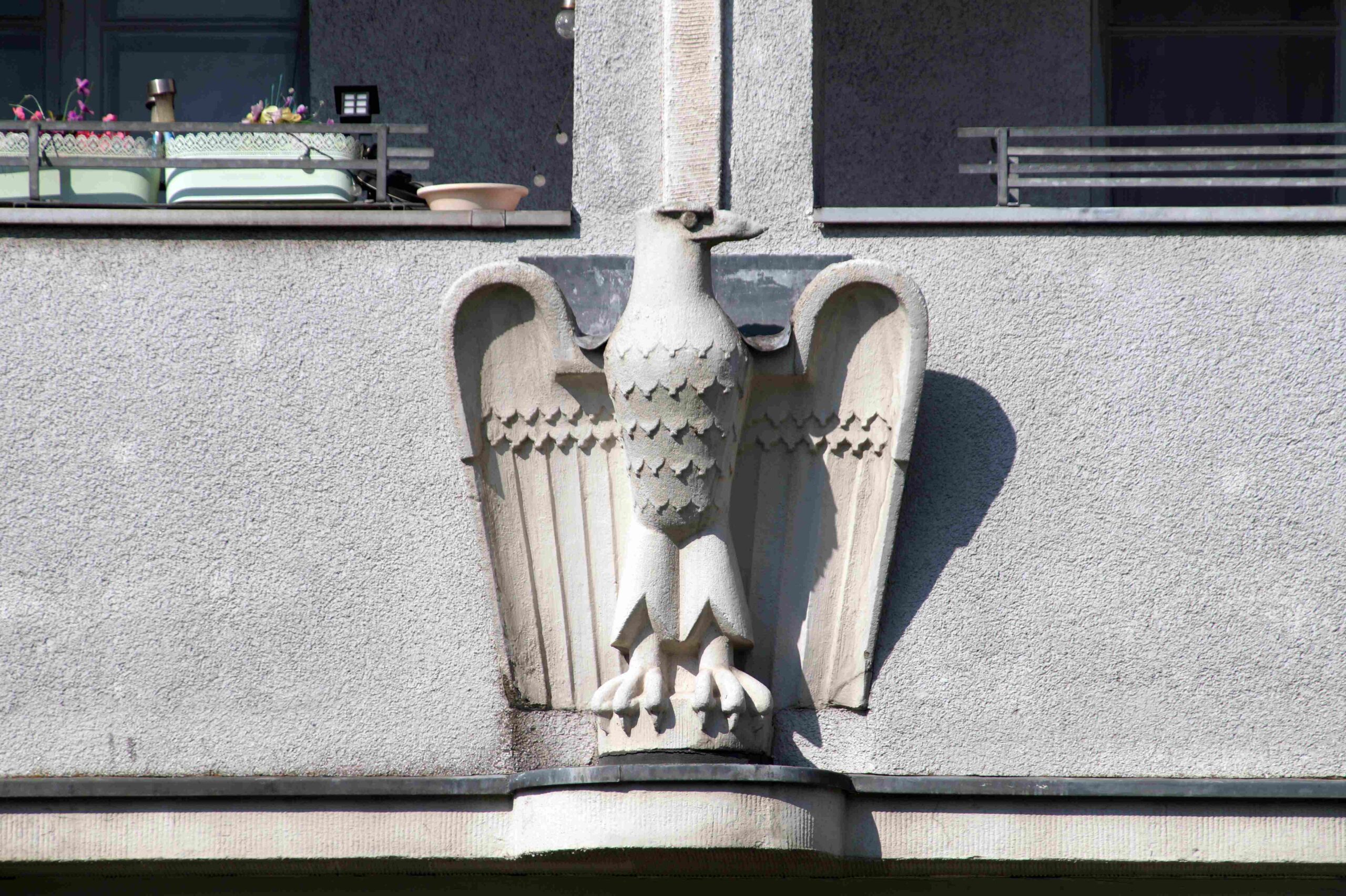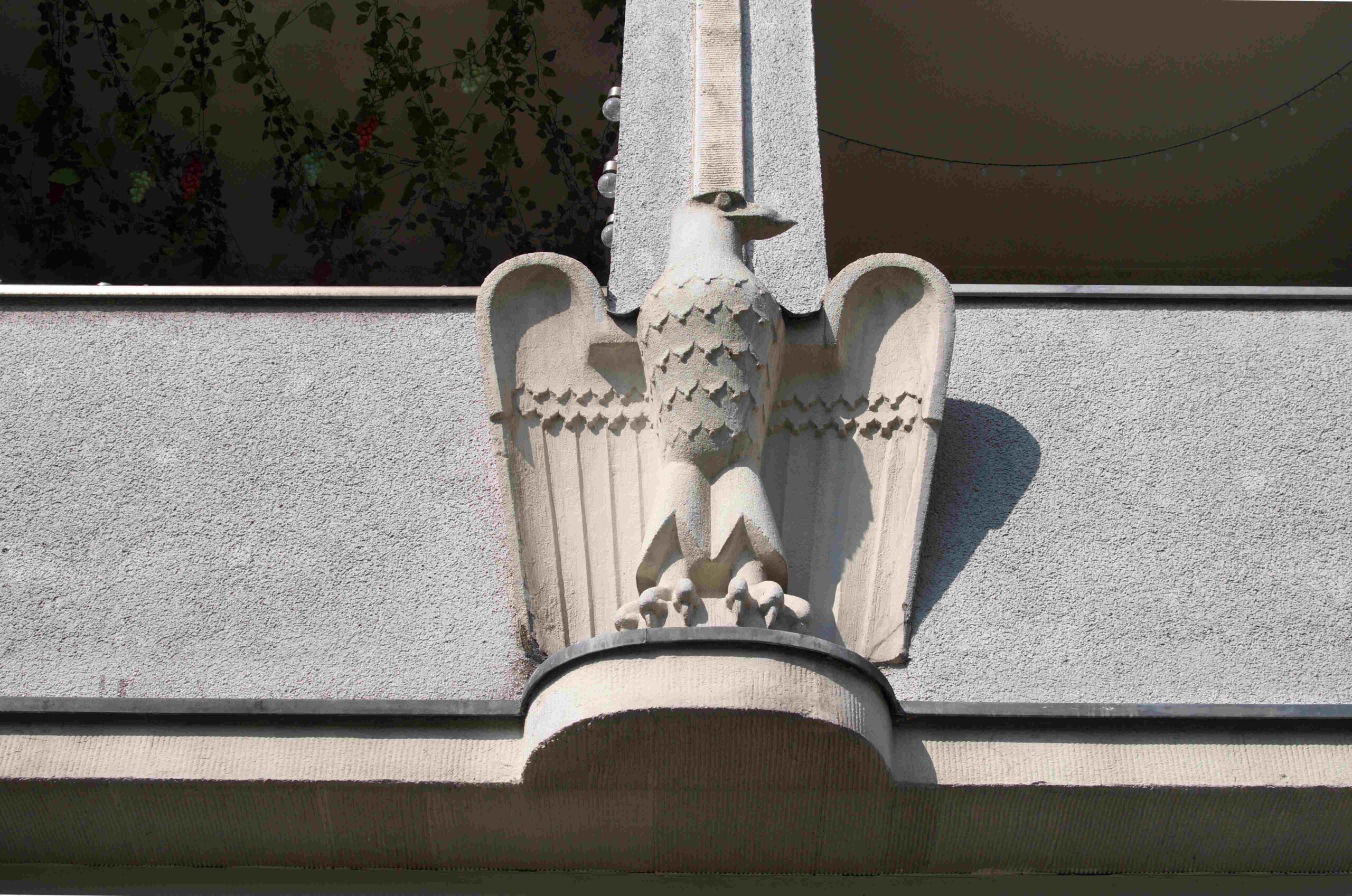 Der Adler wurde zur Bauzeit des Gebäudes um 1930 geschaffen.