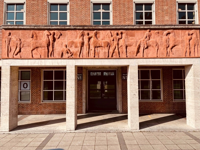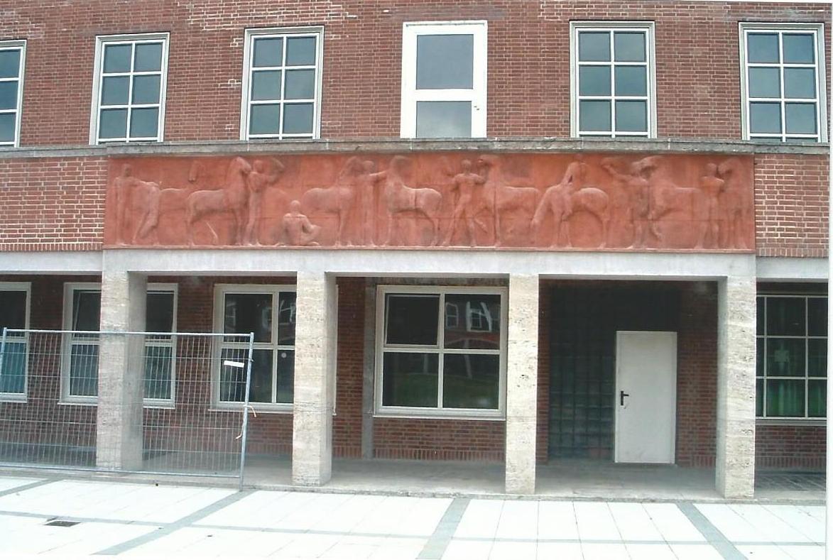 Neben Arno Lehmann war auch der Keramiker Max Lauger aus Lörrach zur Einreichung von Entwürfen zu diesen Friesen aufgefordert worden. Im Juli 1935 beauftragte man Arno Lehmann, der nach seinem Studium an der Münchner Hochschule, seit 1933 Werkstatt für Bildhauerkunst und Keramik in Berlin-Lichterfelde betrieb (Susanne Kähler).