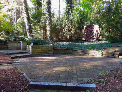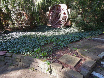 »1939-1945/ AUS DEM ZERSTÖRTEN BERLIN/ GEBORGENE ORNAMENTE/ DER WIENER BRÜCKE/ BEIDE AUF DEM FRIEDHOF AUFGE-/ STELLTEN BILDHAUERARBEITEN/ - ENTSTANDEN UM DIE JAHRHUNDERT-/ WENDE - BEHANDELN MOTIVE/ AUS DEM PERGAMON-ALTAR«