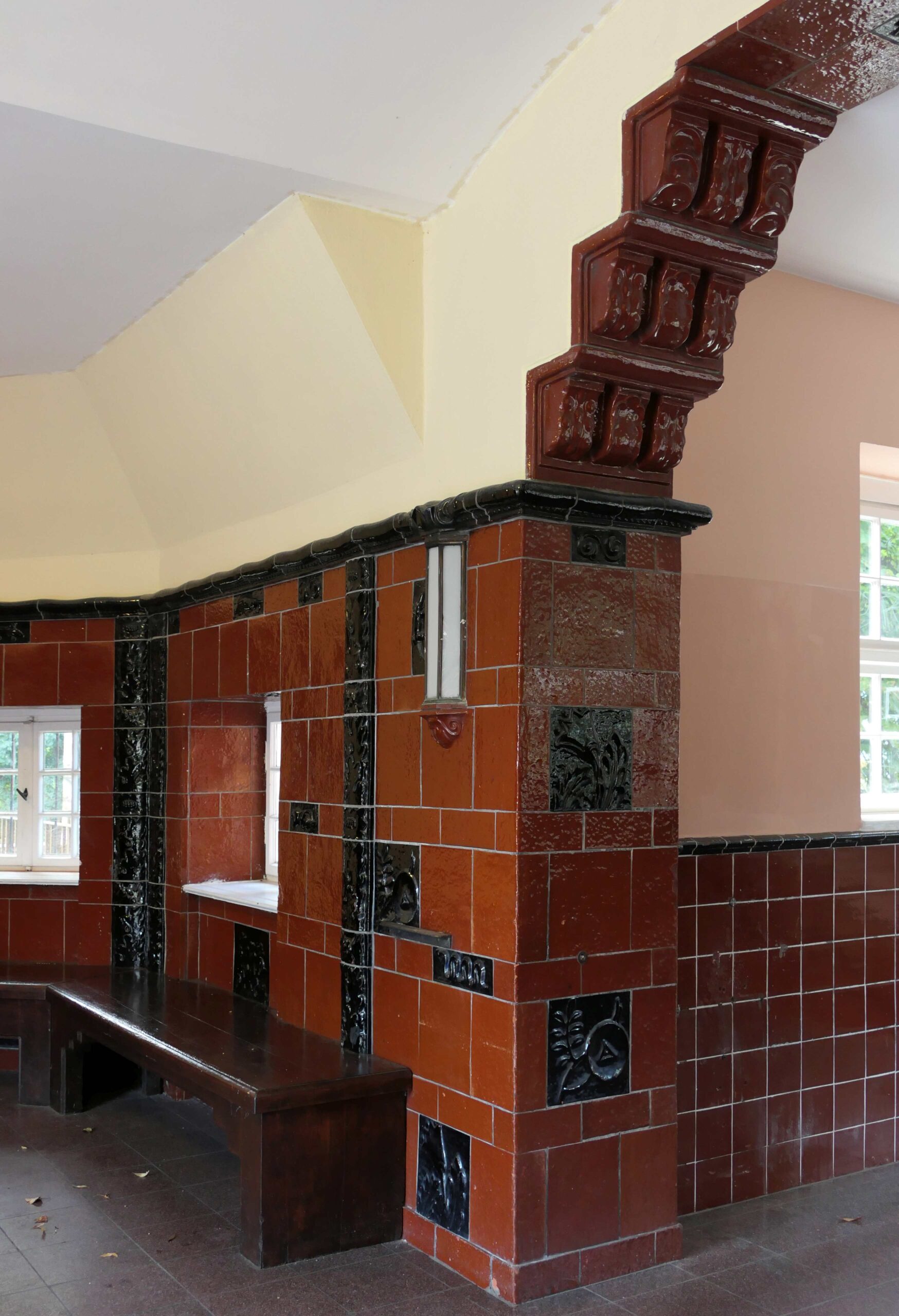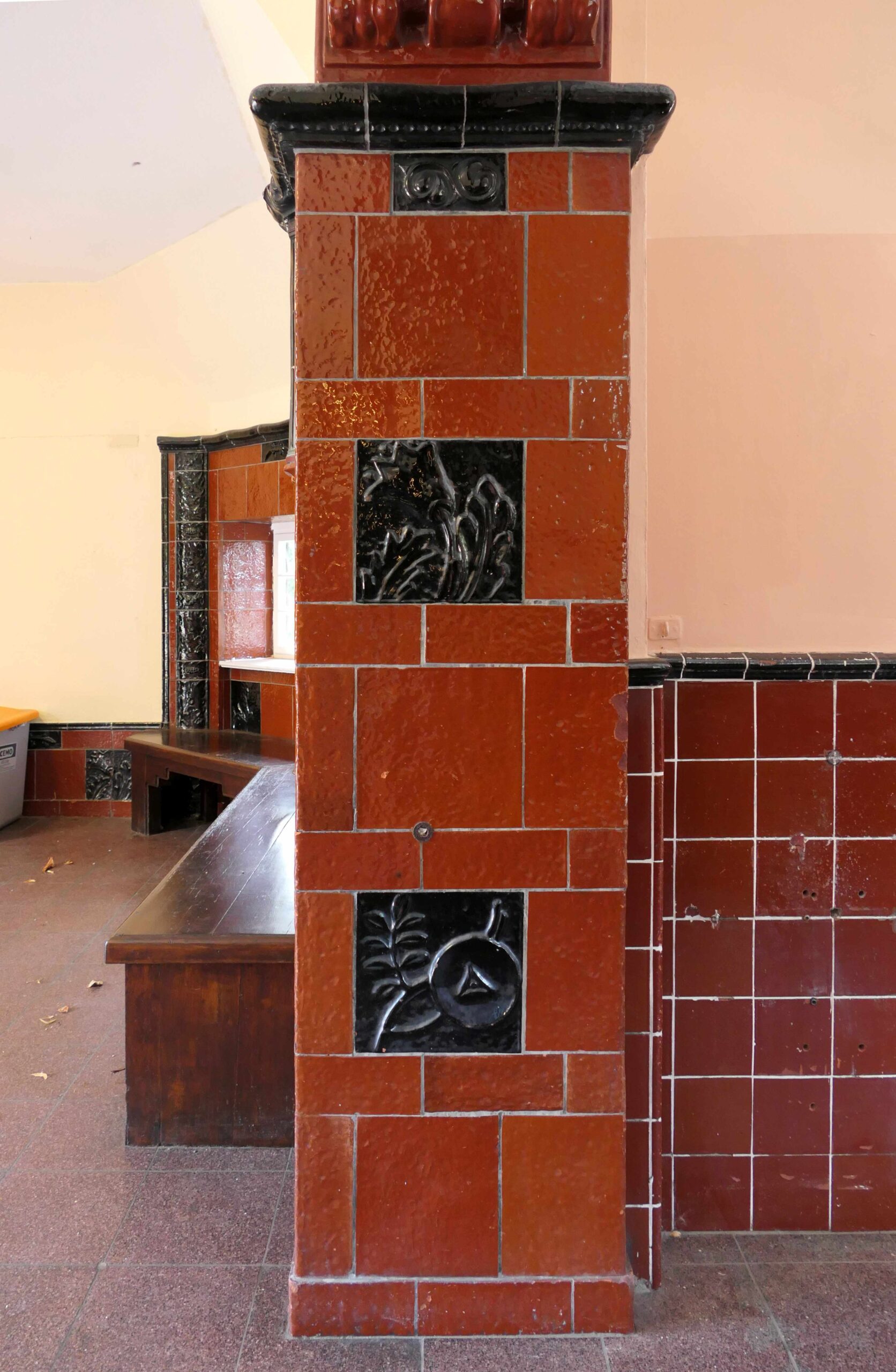 Die Reliefplatten wurden nach Entwürfen von Richard Kuöhl um 1913 in den Ullersdorfer Werken in Nieder-Ullersdorf gebrannt (Nicola Vösgen).
