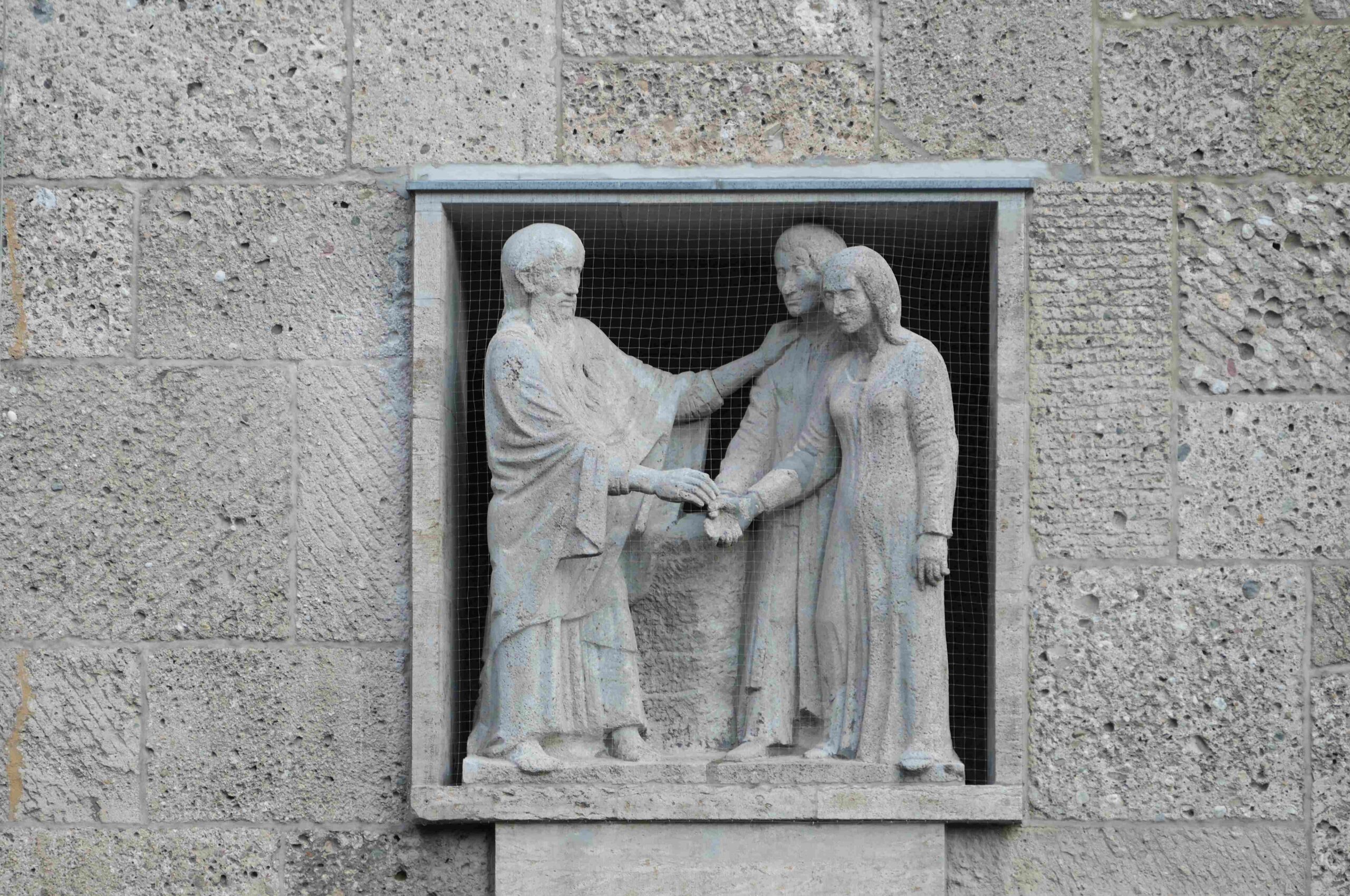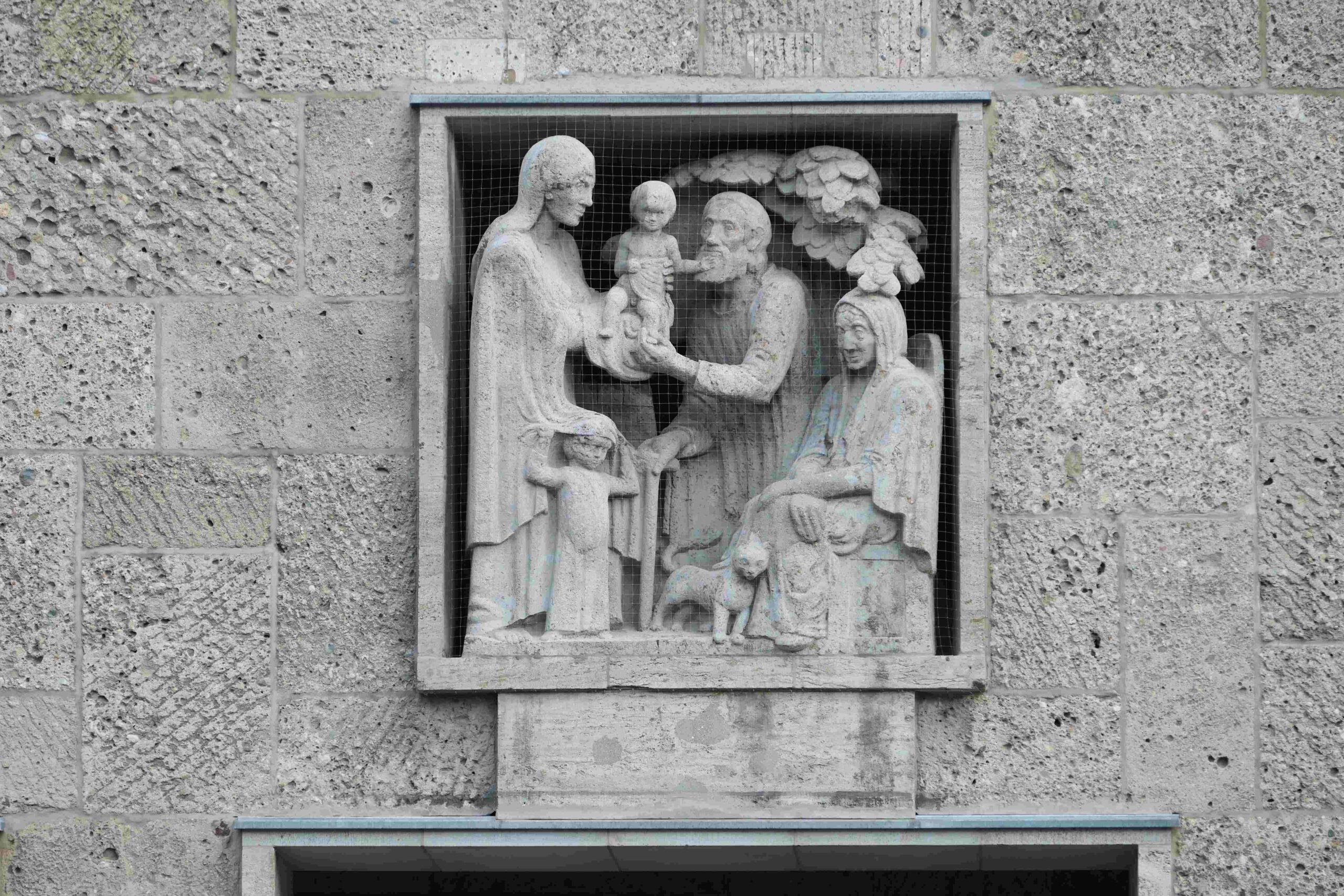 Die Muschelkalk-Reliefs schuf Waldemar Raemisch um 1936.
