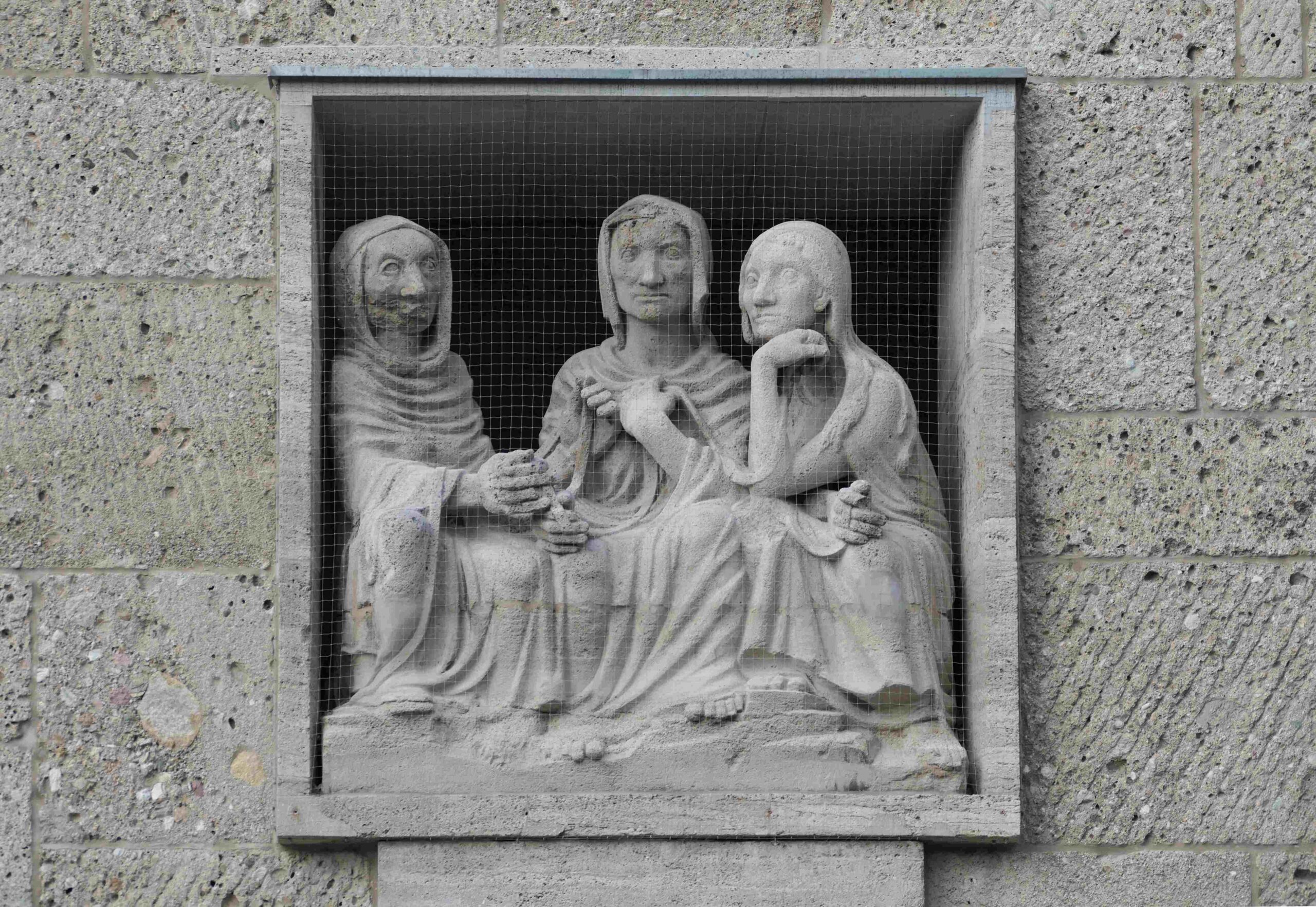 Die Muschelkalk-Reliefs schuf Waldemar Raemisch um 1936.