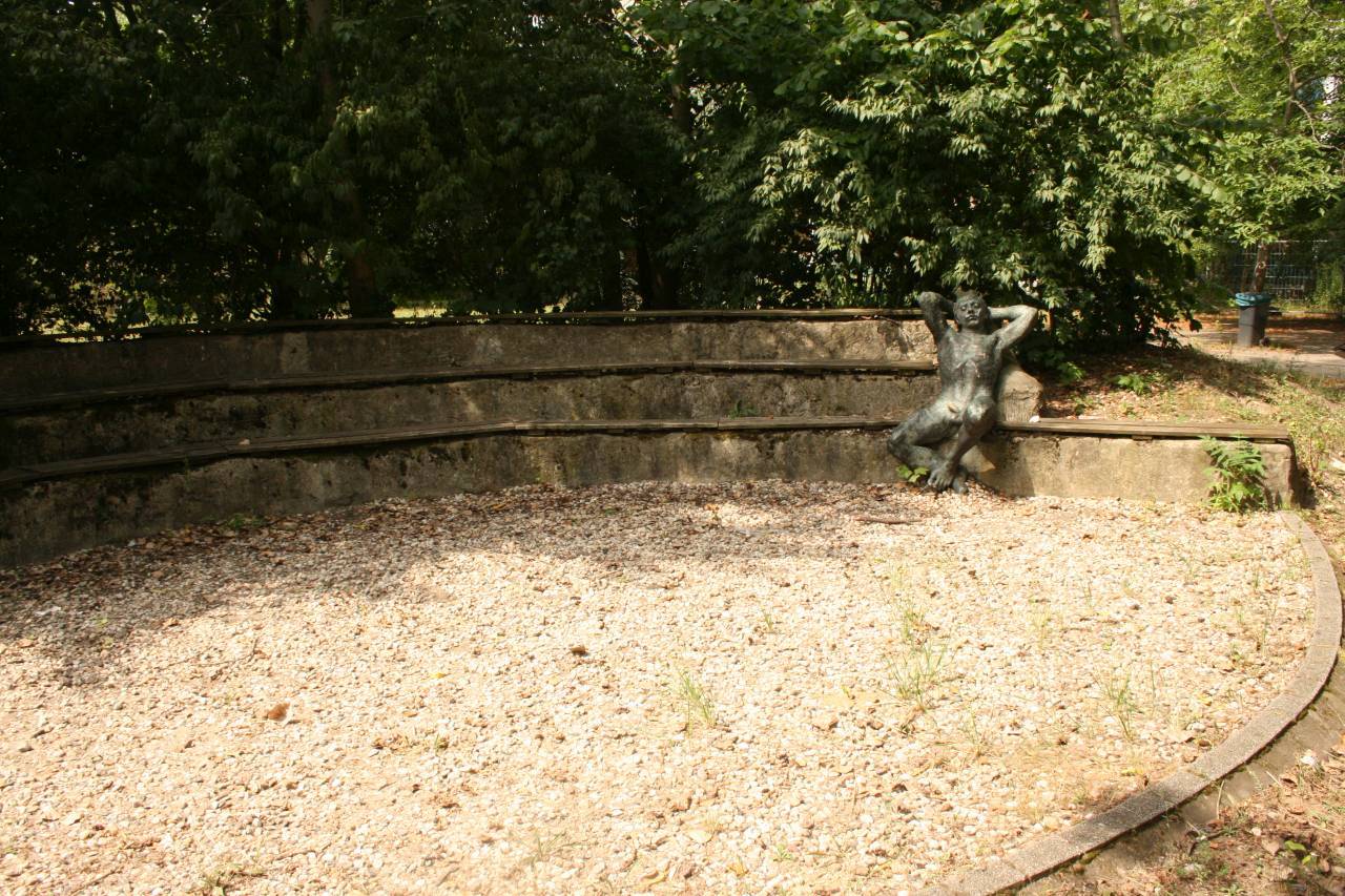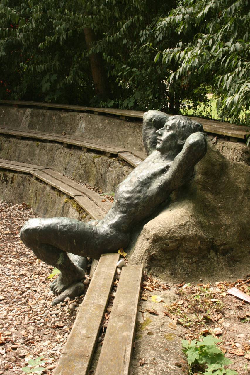 Im Innenhofbereich des Coubertin-Gymnasium, neben der Turnhalle ist eine Sitzgelegenheit in Form eines Amphitheaters angelegt. Auf drei ansteigenden Bänken mit Holzlattung können die Schüler Platz nehmen. Auf der rechten Hälfte, am Rand sitzt die etwa lebensgroße Bronzefigur eines nackten, sich ausruhenden muskulösen, jungen Mannes, genannt „(Ruhender) Sportler“. In der Anmutung des antiken, hellenistischen Barberinischen Fauns (München, Glyptothek) ist der Mann zurückgelehnt, die Arme hält er hinter dem zurückgelegten Kopf verschränkt. Die Augen sind geschlossen, die Gesichtszüge sind entspannt. Sein linkes Bein ist nach vorne angewinkelt und der linke Fuß ruht auf dem rechten Fuß auf, das rechte Bein ist geneigt und ebebenso angewinkelt. In seiner exponierten Haltung wirkt der ruhende Sportler leicht lasziv (Susanne Kähler, Jörg Kuhn).