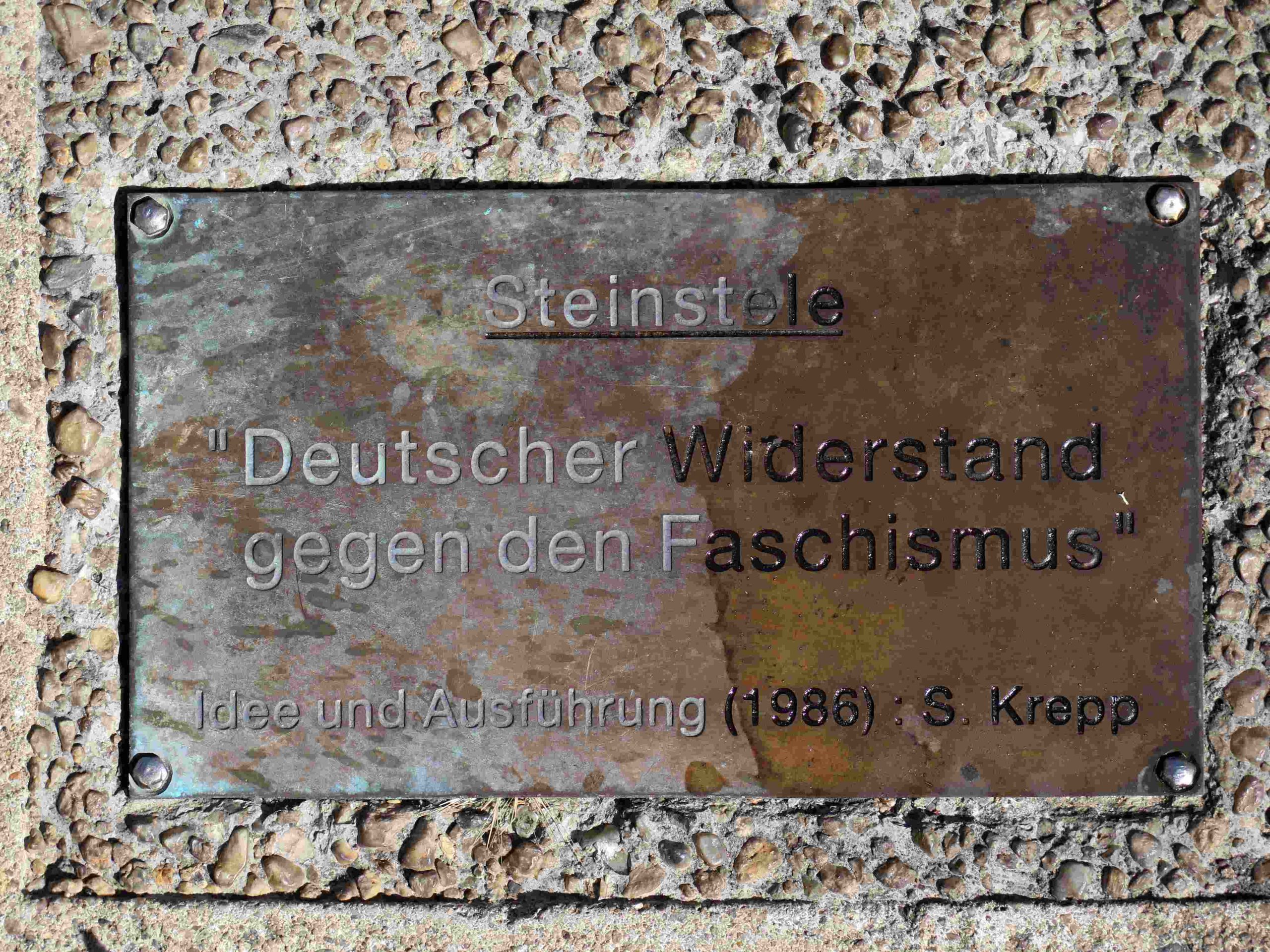 »Steinstele / "Deutscher Widerstand / gegen den Faschismus" / Idee und Ausführung (1986): S. Krepp«