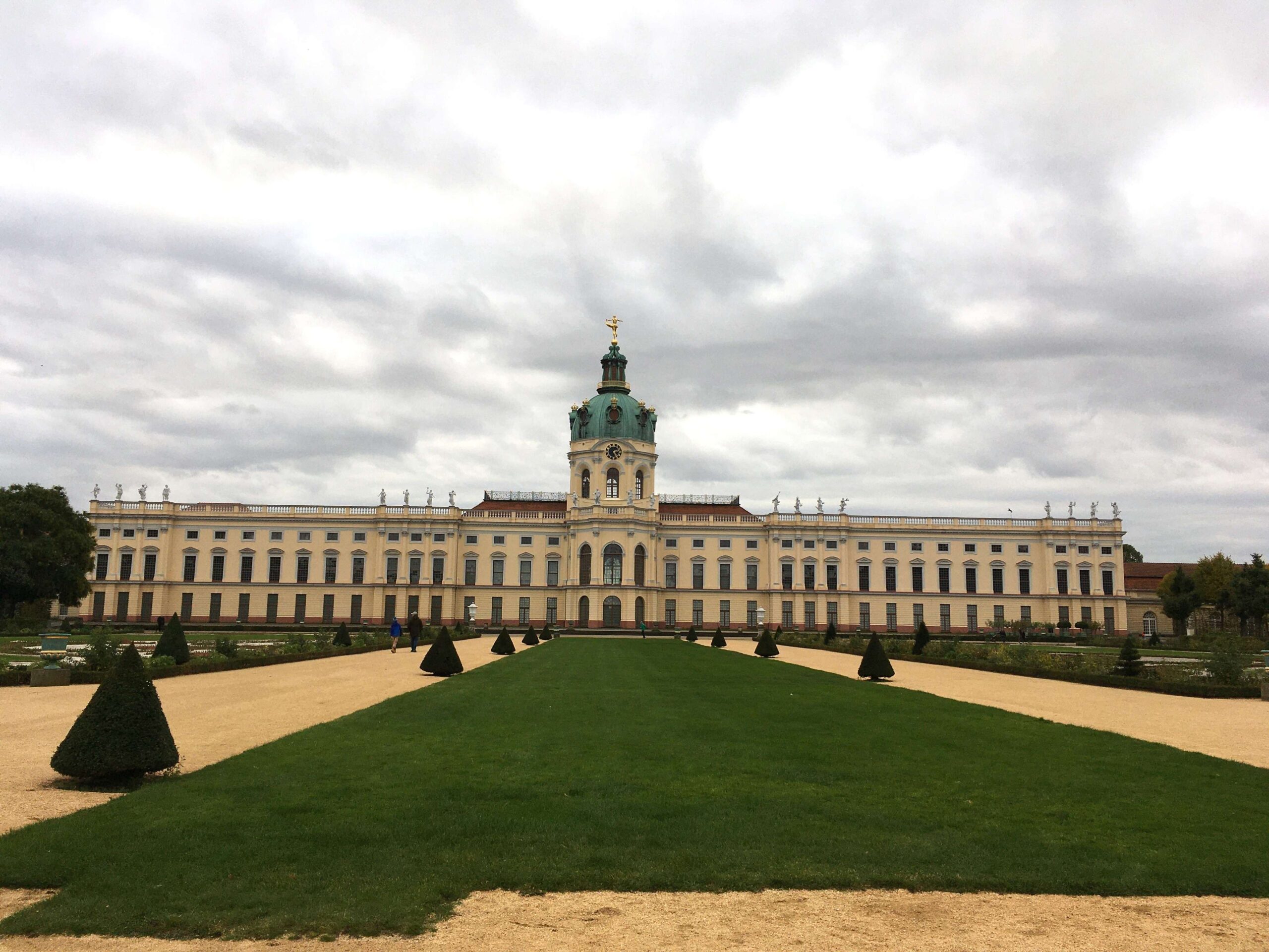Das Schloss Charlottenburg am Spandauer Damm ist eine zweieinhalb-geschossige Drei-Flügel-Anlage mit übergiebeltem Mittelrisalit an der Ehrenhof-Seite (vgl. Dehio, S. 155). Das Schloss weist typische Merkmale barocker Baukunst auf, wie eine strenge Geometrie und Symmetrie, die sowohl am Bauwerk selbst als auch in der Gestaltung der zugehörigen Gartenanlage zum Ausdruck kommt. Es besteht aus einem Mittelbau („Nehringbau“) mit Kuppelturm mit Fortuna und zwei Seitenflügeln („Eosanderflügel“, „Knobelsdorfflügel“). Der Westflügel wird um die Orangerie und eine Kapelle ergänzt. Auf der Seite zur Schlossstraße befindet sich der sogenannte Ehrenhof, in dem mittig ein Reiterstandbild des Großen Kurfürsten (Kurfürst Friedrich Wilhelm I. 1640 – 1688) platziert ist. Das zentrale Schlossgebäude bildet die Schnittstelle zwischen Stadt und Garten.