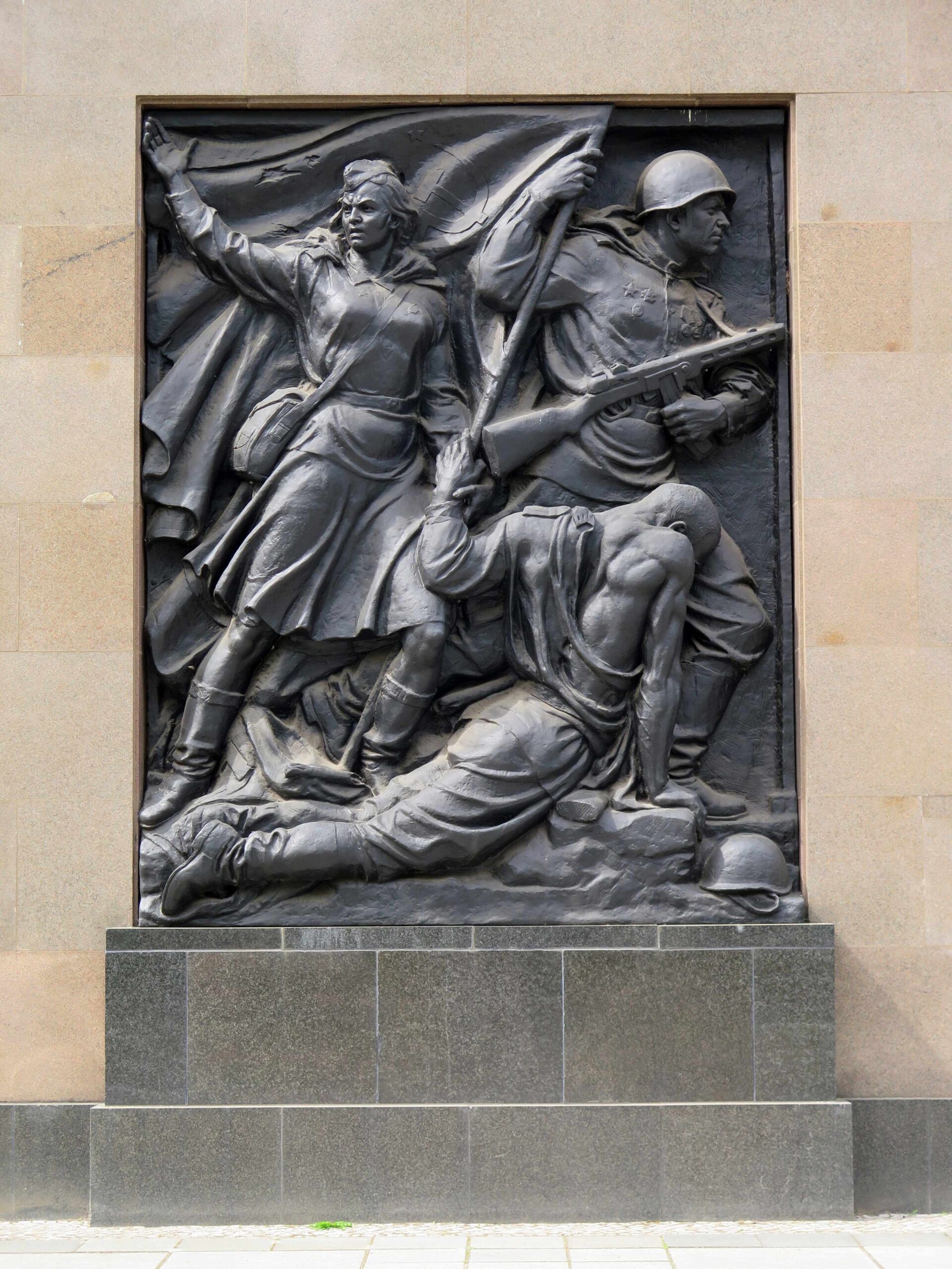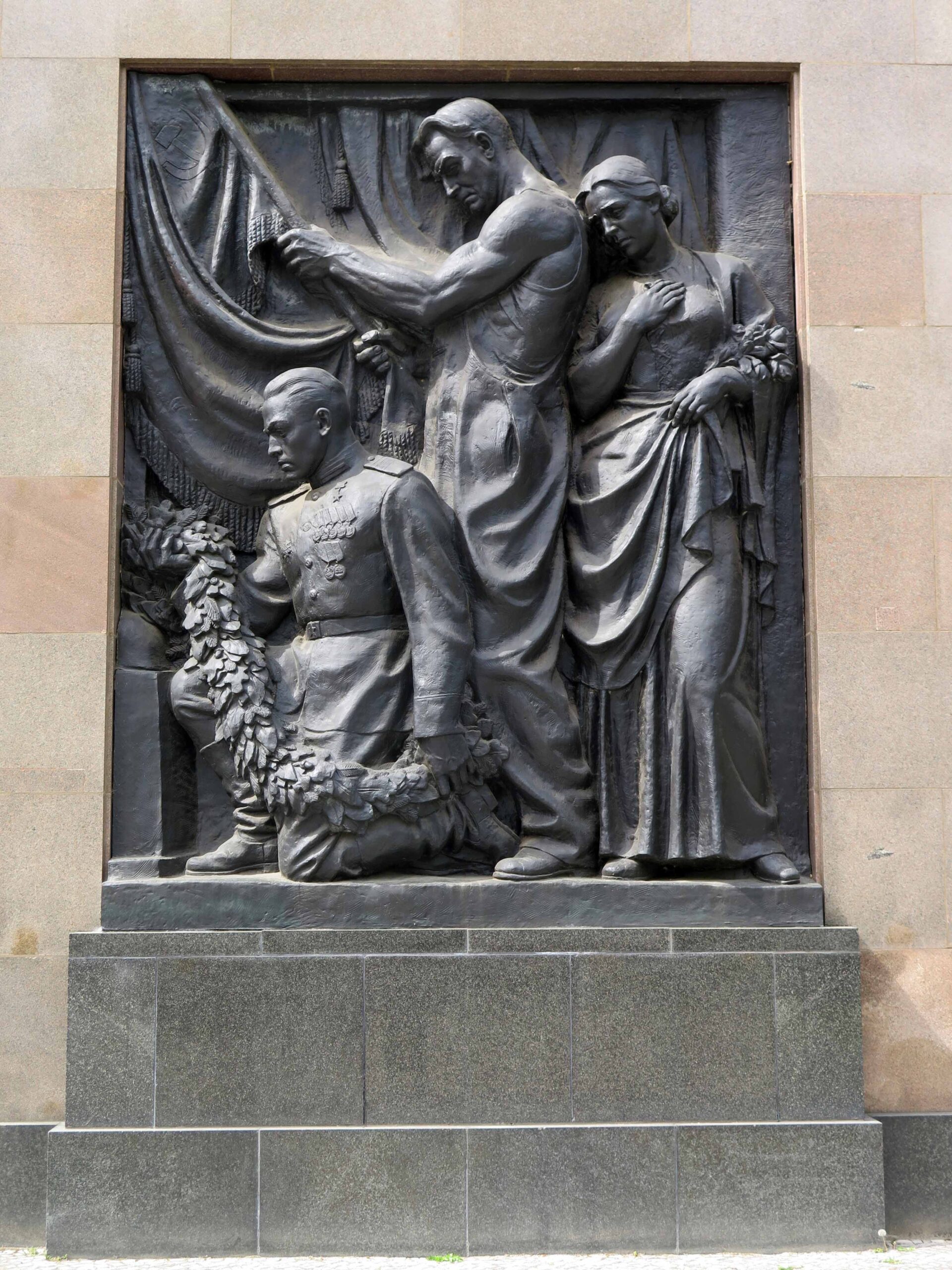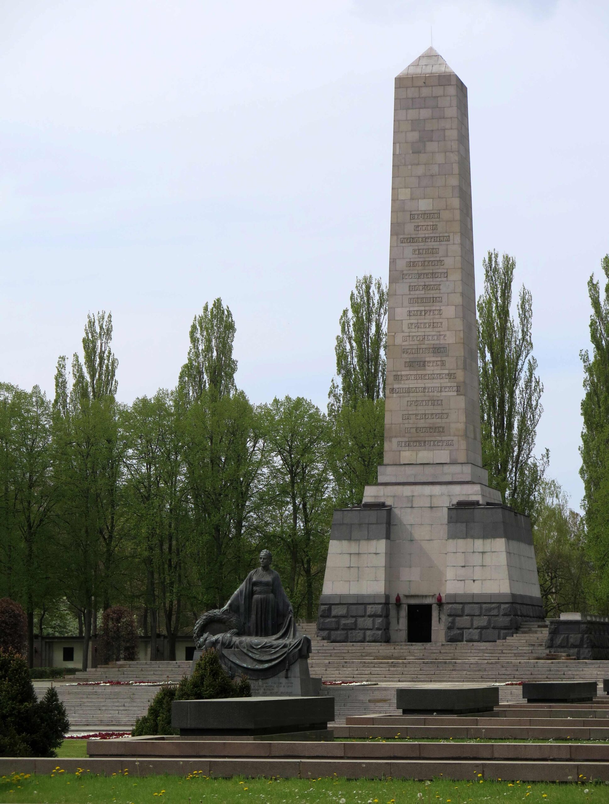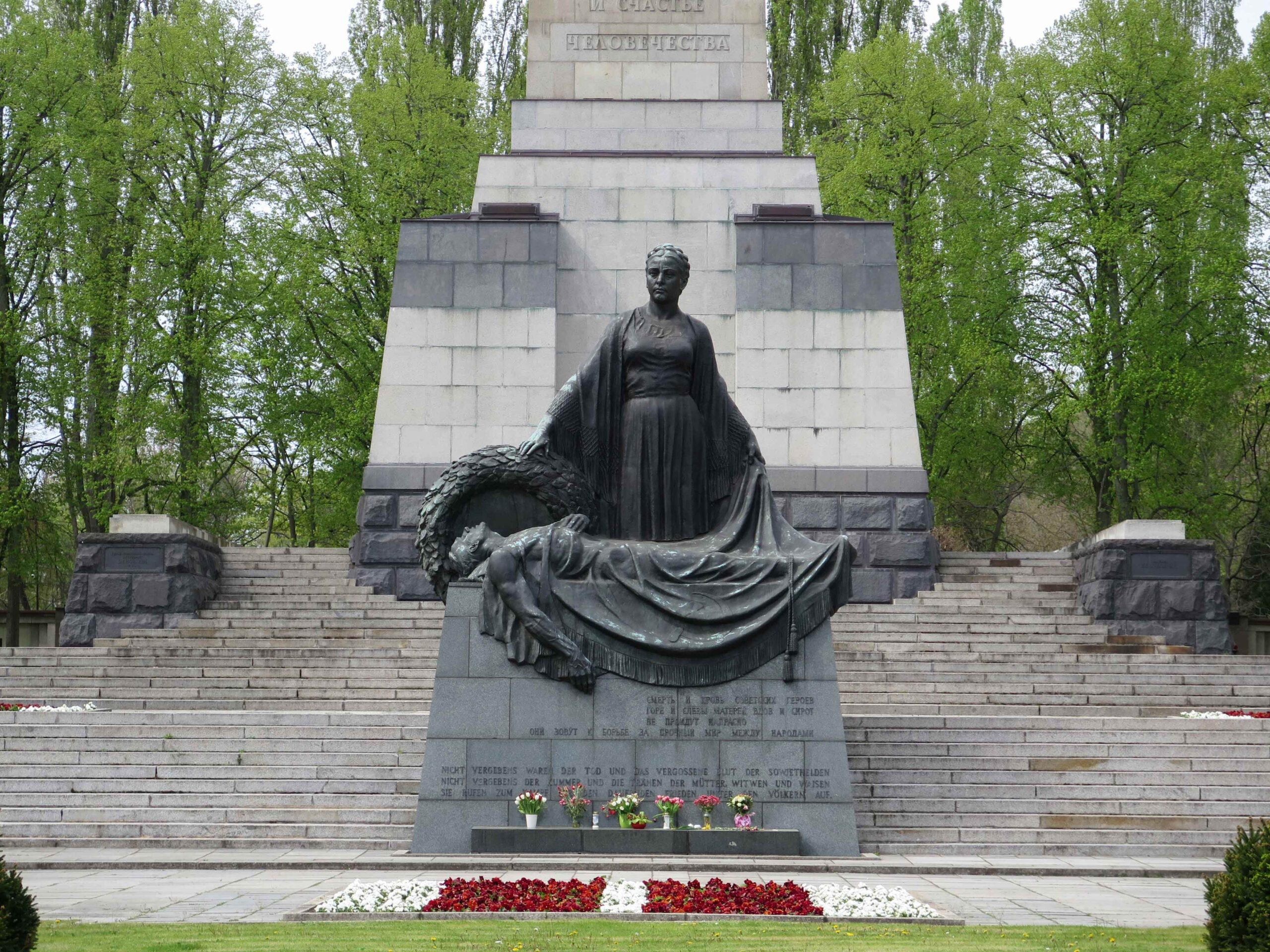 »ENTBLÖSST DAS HAUPT! HIER SIND SOWJETISCHE SOLDATEN / HELDEN DES GROSSEN VATERLÄNDISCHEN KRIEGES 1941-1945 / ZUR EWIGEN RUHE GEBETTET. / SIE GABEN IHR LEBEN FÜR EURE ZUKUNFT.«