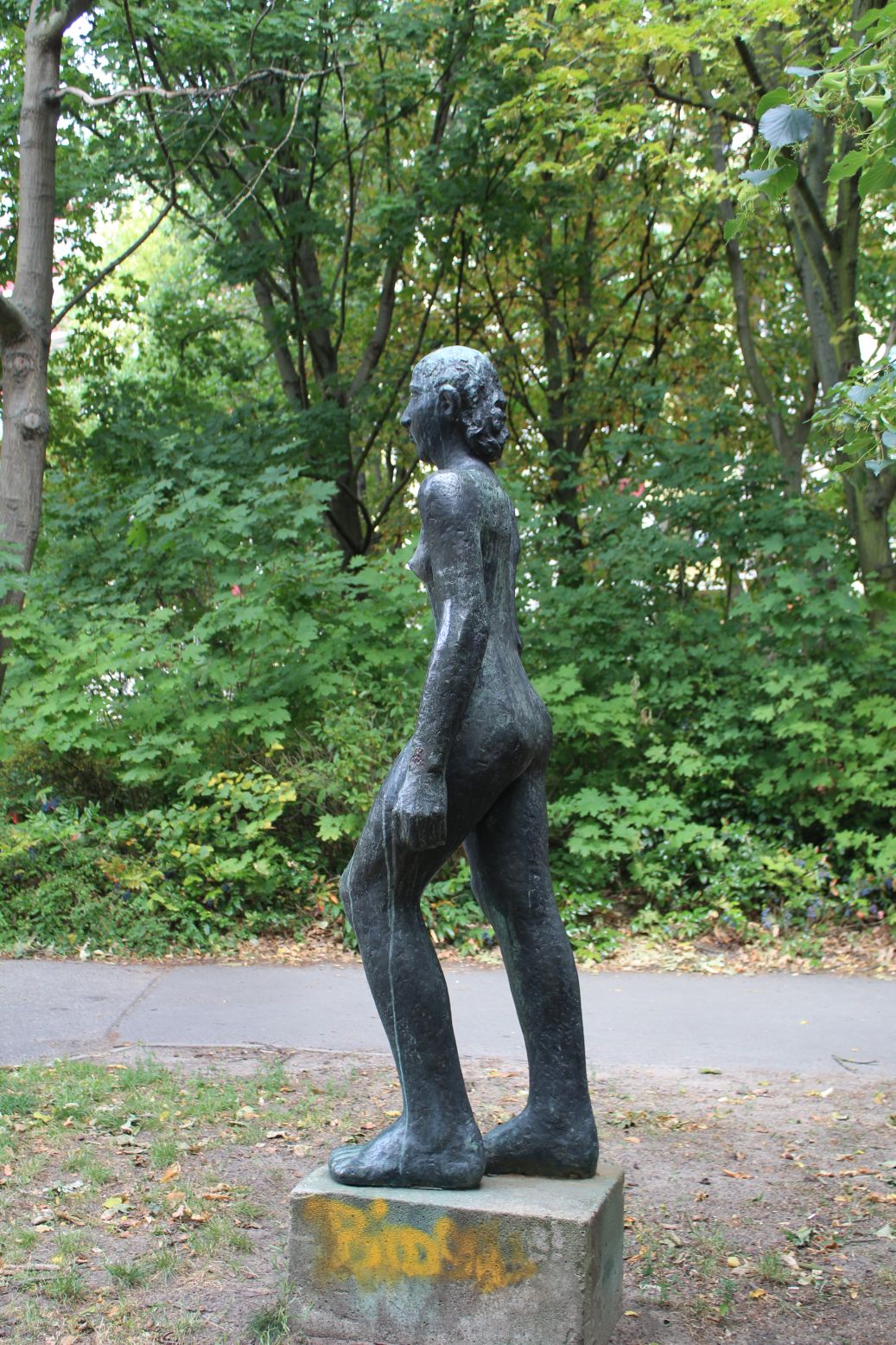 Auftraggeber: VEB WBK Berlin Laut des Ausstellungskatalogs der 4. Kunstausstellung der DDR von 1982/83 stand die Skulptur zuvor an der "Annenstraße, WG 1"; ebenfalls ist dort das Entstehungsjahr 1982 angegeben, sowie der (ehem. ?) Eigentümer: Rat des Stadtbezirks Berlin-Marzahn Die Standortänderung ist in der weiteren Literatur wiefolgt beschrieben: "Ursprünglich war die [Figur] direkt auf dem Fußweg platziert, wurde aber nach mehreren Beschädigungen in ein Hochbeet versetzt." ("Kunst in der Großsiedlung", 2008, S. 75) Zudem ist/war die Skulptur Objekt der Skulpturensammlung des Museums "Kloster Unser lieben Frauen" in Magdeburg (Quelle: Flickr, Benutzer "Bergfels": https://www.flickr.com/photos/54359823@N03/7970305500/in/photostream/, abgerufen am 09.04.2020)