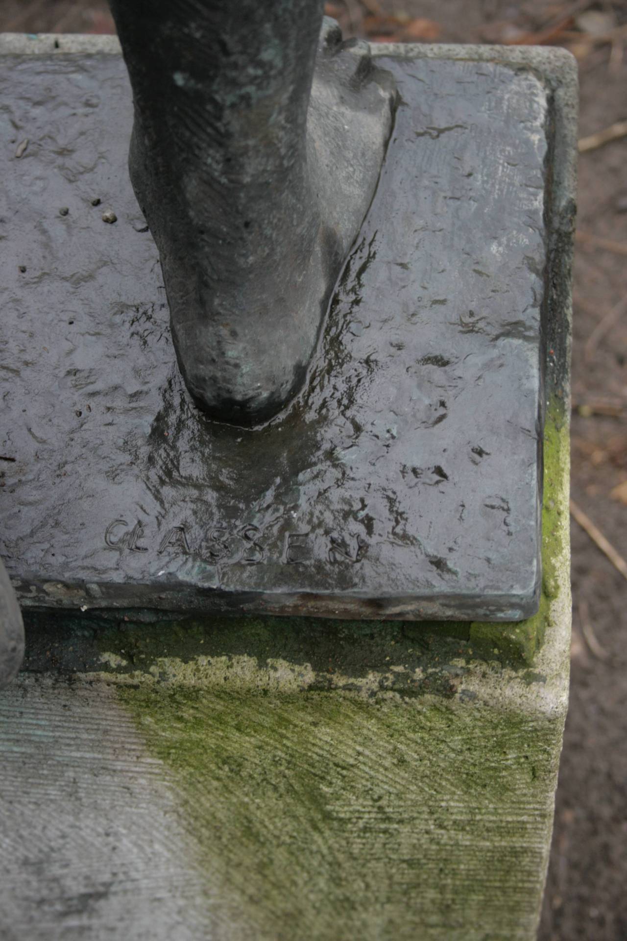 1975 aufgestellt; Figur vor dem Mai 2018 gestohlen, später zersägt wieder aufgefunden. Der Dieb, Christian R. aus Brandenburg, soll laut eines Zeitungsberichtes von Kerstin Gehrke und Helena Davenport (Tagessiegel, vom 17.01.2019) 184,80 Euro von einem Schrotthändler für die zerlegte Figur erhalten haben. Ein Anwohner meldete am 11. Mai den Diebstahl der beliebten Plastik der Polizei (vgl. "Der Schwimmer ist weg", in: Berliner Woche vom 23.05.2018, Titelgeschichte). Am 17. des selben Monats kam von einem Schrotthändler, dem das in neun Teile zersägte Kunstwerk zum Kauf angeboten worden war, der entscheidene Hinweis auf den Täter. Das zersägte Kunstwerk wurde dem Bezirk - also dem Eigentümer der Plastik - zurückgegeben. Vorausgesetzt, die Finanzierung wäre gesichert - veranschlagt sind rund 8000,- Euro - soll die Plastik wieder hergestellt werden. Bei Bronzen ist dies bei starker Beschädigung zumeist schwer möglich, wenn der originale Gips oder die Gussform verloren sind - was in der Mehrzahl der Fälle die Realität ist. 2019 wurde im Rathaus Treptow, Neue Krugallee 4, die verdienstvolle Ausstellung "Wenn nur der Sockel bleibt" gezeigt, bei der auch die Fragmente des "Schwimmers" zu sehen waren. Trotzdem war es möglich die Plastik nach drei Jahren intensiver Restaurierungsarbeiten der Kunstgießerei Altglienicke, im August 2021 wieder aufzustellen. Die aufgefundenen Teile der Plastik wurden wieder zusammengesetzt, wobei die Schweißnähte als Erinnerung an die Geschehnisse von vor drei Jahren dienen sollen (Jörg Kuhn, Rieke Fender).