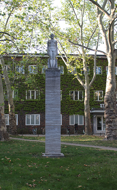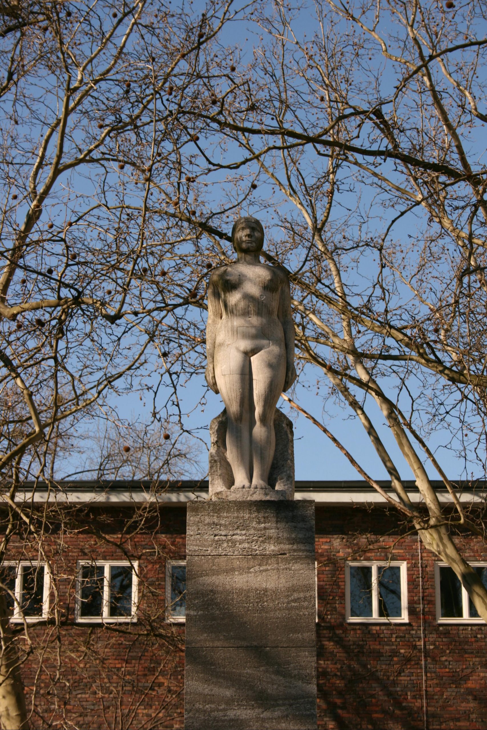 Die um 1928 entstandene Figur wurde 1936 vor dem 1930 nach Entwurf von Heinrich Lassen errichteten Städtischen Schwimmbad Schöneberg (ehemals Schöneberger Volksbad; seit 2012 zusätzlich nach Hans Rosenthal benannt) auf einem Pfeiler aufgestellt (Jörg Kuhn).