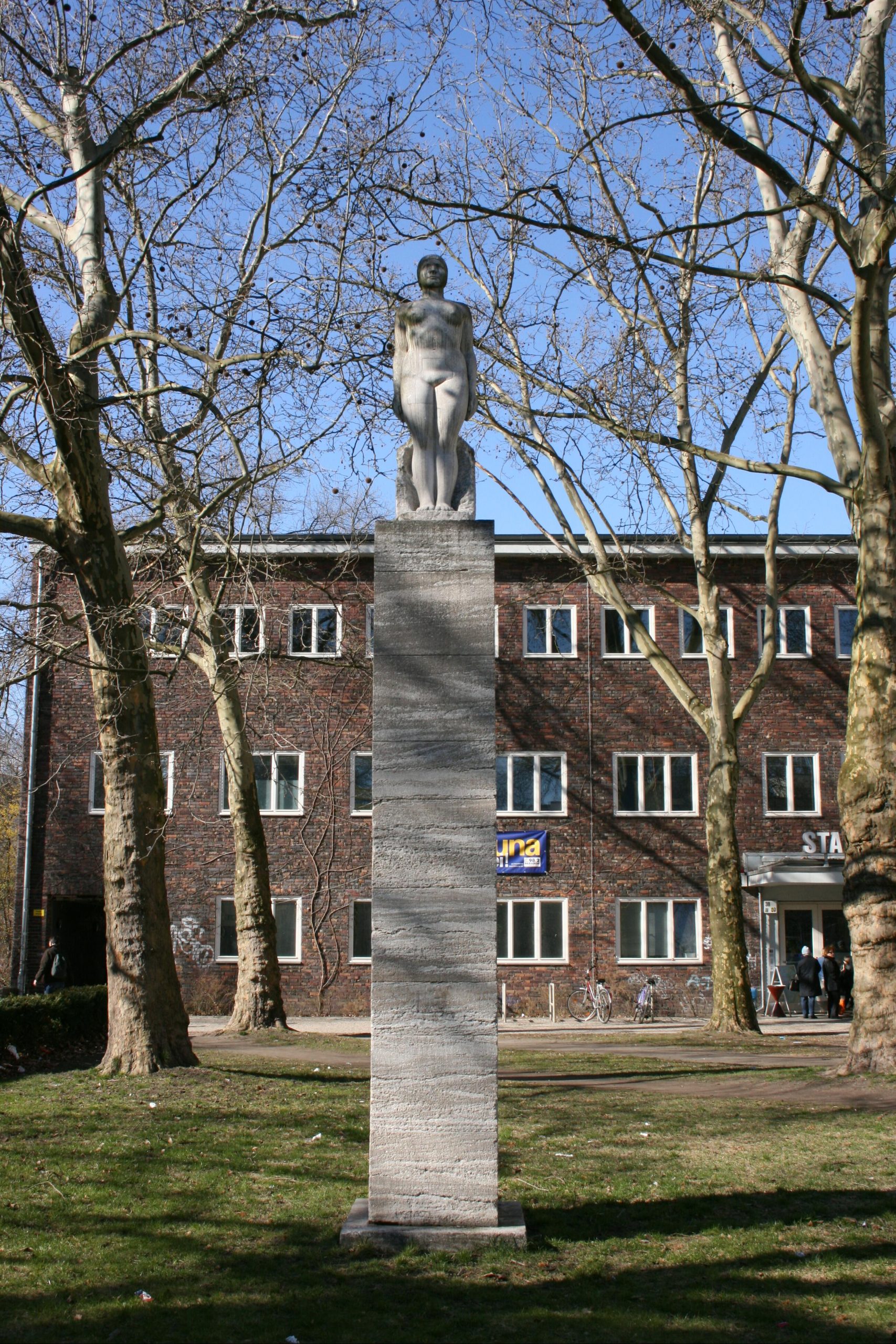 Die um 1928 entstandene Figur wurde 1936 vor dem 1930 nach Entwurf von Heinrich Lassen errichteten Städtischen Schwimmbad Schöneberg (ehemals Schöneberger Volksbad; seit 2012 zusätzlich nach Hans Rosenthal benannt) auf einem Pfeiler aufgestellt (Jörg Kuhn).