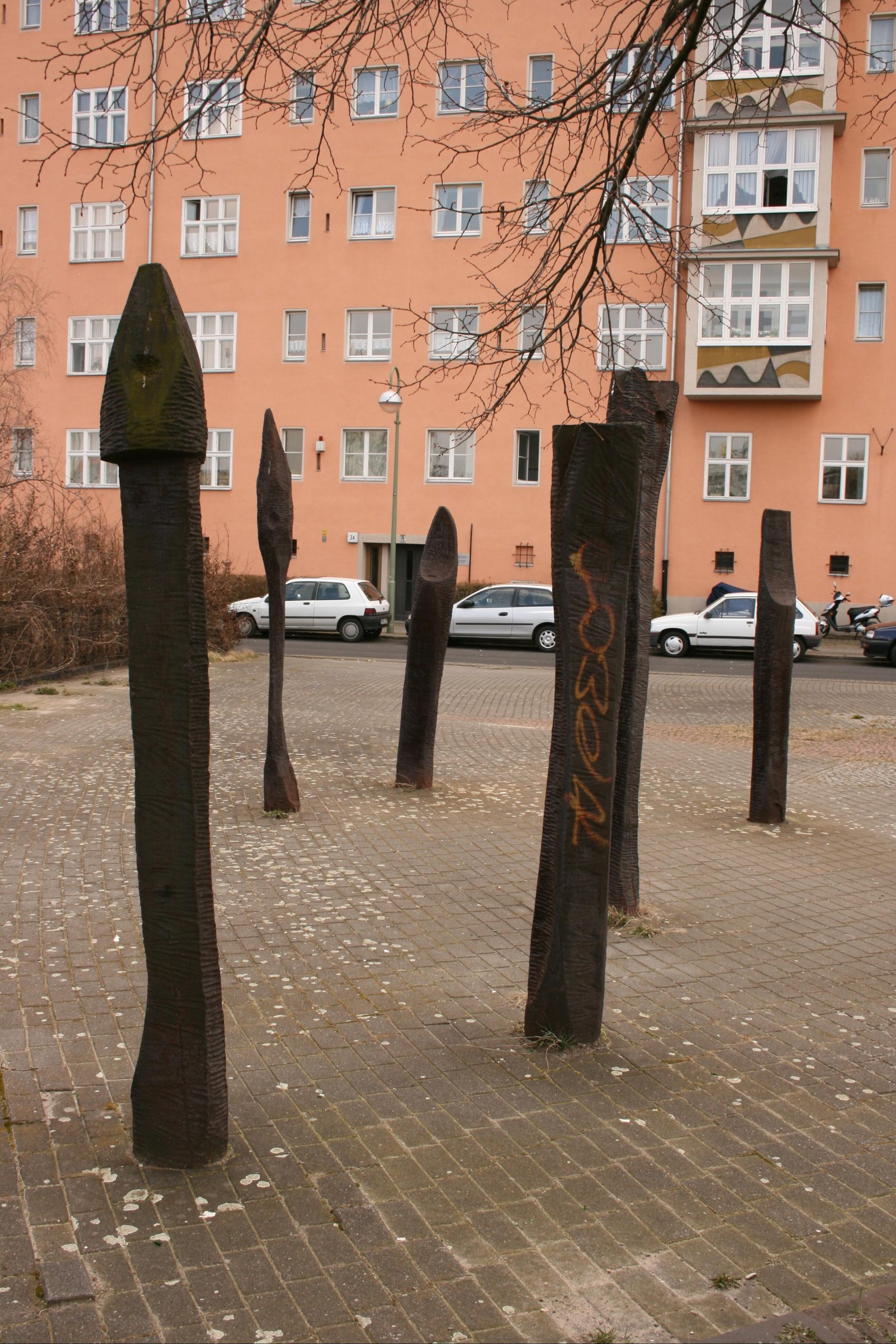 sechs Eisenstelen