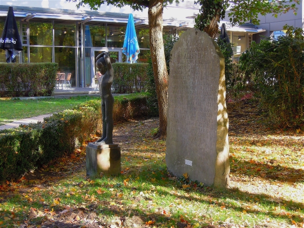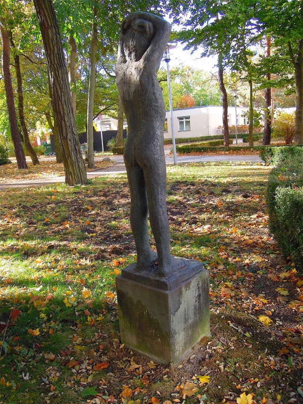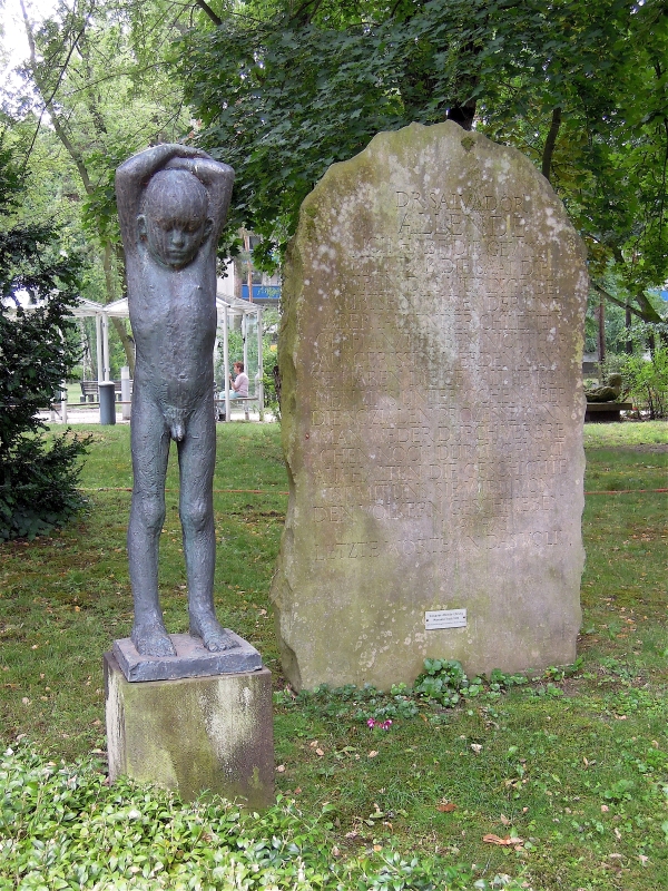 Stehender Akt eines Knaben. Die Plastik steht auf einer Rasenfläche nahe dem Weg. Sie zeigt einen kleinen Jungen, sehr aufrecht, fast gestreckt, auf beiden Beinen stehend und mit über dem leicht geneigten Kopf verschränkten Armen. Die Spuren der Modellierung in der Tonform sind sichtbar. Die lebensgroße Bronze fußt auf einer annähernd quadratischen Plinthe. Diese ist auf einem Sandsteinsockel befestigt, durch dessen Materialität eine Verbindung zu dem schräg hinter dem Jungen stehenden, die „Allende-Ehrung“ vervollständigenden, Gedenkstein hergestellt wird (Jürgen Tomisch, Barbara Anna Lutz).