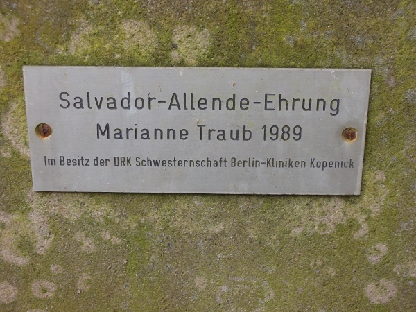 Die Gebäude des Altbaus des Krankenhauses Köpenick stammen aus der Zeit zwischen 1910 und 1914. Im Zuge der Entwicklung des Neubauviertels wurden seit Mitte der 70er Jahre die Kapazitäten des Krankenhauses ständig erweitert und 1979 mit dem Bau eines neuen Bettenhauses begonnen. Die Fertigstellung aller Erweiterungsbauten zog sich bis in die Mitte der 1980er Jahre hin. Anfang 1984 erhielt der Krankenhauskomplex den Namen Salvador-Allende-Krankenhaus«. Die Adresse Salvador-Allende-Straße hatte das Krankenhaus bereits im November 1973 erhalten als – wenige Wochen nach dem Sturz des chilenischen Präsidenten Salvador Allende und seinem Selbstmord noch am selben Tag – in dem in Köpenick neu entstandenen Wohngebiet als Zeichen der Solidarität mit Chile Allende und Neruda durch Umbenennungen von Straßen und Schulen geehrt worden waren. (Text: Ganz, Cornelia: Allende Viertel Berlin Köpenick. Kunst im öffentlichen Raum. Erfassung und Bewertung der Kunst im öffentlichen Raum, im Auftrag des LDA Berlin, Berlin 2014, Lfd.Nr. 10). Der "Sich schützende Knabe" entstand als Teil eines "In memoriam Salvador Allende". Die Auftragsvergabe für die „Allende-Ehrung“ »erfolgte im Rahmen der Kunstkonzeption baugebundene Kunst zum Bettenhaus-Neubau der Klinik Köpenick« mit einer konkreten thematischen Vorgabe, im Kontext mit dem Namensgeber der Klinik: „Dr. Salvador Allende – Art und Revolutionär, sozialistischer Gesundheitspolitiker – Staatsmann“ . Bei der Vorlage von Entwurfsideen durch Marianne Traub im Oktober 1985 vor dem Beirat für Stadtgestaltung wurde die „Komposition einer Mauerruine aus Kunststein, dem darin eingelassenen bronzenen Porträtrelief Salvador Allendes und dem eingeritzten Namenszug sowie der Bronzefigur eines Mädchens (das chilenische Volk symbolisierend) mit einem zerbrochenen Milchkrug“ zur Weiterbearbeitung ausgewählt. Eine spätere Änderung des Konzeptes „aus gestalterischen Gründen“ führte zu der ausgeführten Variante mit dem „Sich schützenden Knaben“ und des Schriftsteins mit „Allendes letzten Worten“. Ergänzt wurde die Komposition ursprünglich durch drei Trittsteine, ebenfalls aus Sandstein . Bevor der Gedenkstein fertig gestellt wurde, war die Plastik schon fertig. Sie wurde 1987, noch mit dem Titel „Junge, der sich zu schützen versucht“, ausgestellt auf der X. Kunstausstellung in Dresden und 1988 war sie, bereits als „Sich schützender Knabe“, Ausstellungsstück bei „América Latina“, einer Berliner Ausstellung zu Lateinamerika in der bildenden Kunst der DDR. Die Endabnahme der „Allende-Ehrung im Park“ war eigens wegen der Ausstellung der Knaben-Plastik verschoben worden und fand schließlich im Herbst 1989 statt, mit Ingeborg Hunzinger als „Leiterin des Konzeptionskollektivs“ (Jürgen Tomisch, Barbara Anna Lutz).
