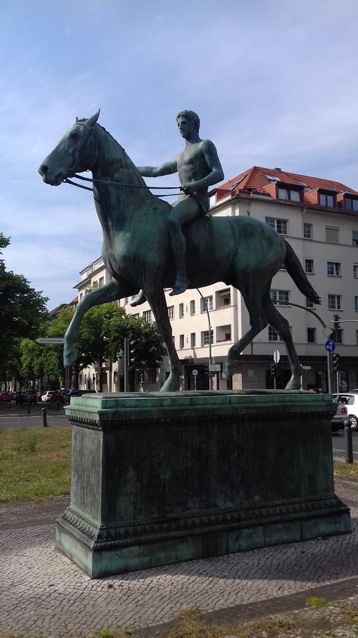 Ursprünglich für den Wannseer Wohnsitz von Geheimrat Eduard Arnhold (1849-1925) geschaffen. 1961 auf der Mittelinsel des Steubenplatzes aufgestellt. 1997 restauriert.