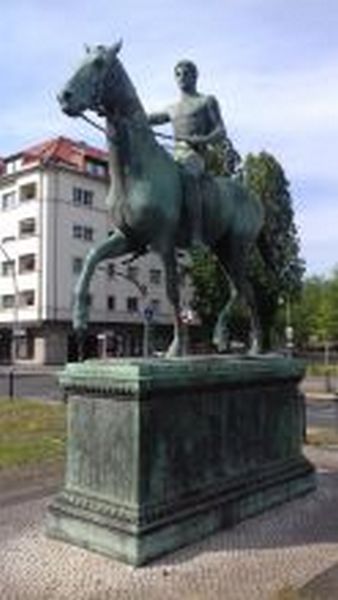 Nackter Jüngling auf schreitendem Pferd, in der rechten Hand eine Siegespalme (verloren).