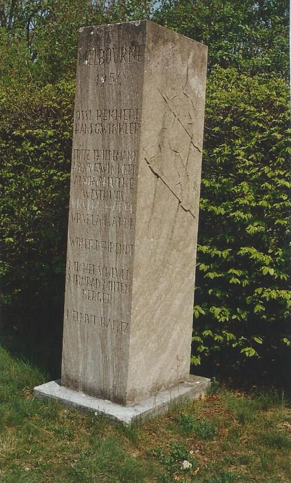 15. Tokio 1964: Reliefs rechts und links mit den Darstellungen Hürdenlauf und Kugelstoßen, Namen an der Frontseite eingraviert, 16. Mexiko City / Grenoble 1968: Reliefs rechts und links mit den Darstellungen: Ruderer (Zweier) und Dressurreiten (stark verwittert), Namen an der Frontseite eingraviert, 17. München / Saporro 1972: Namen an der Frontseite und rechts und links eingraviert, an der Frontseite zusätzlich das Emblem der Spiele,