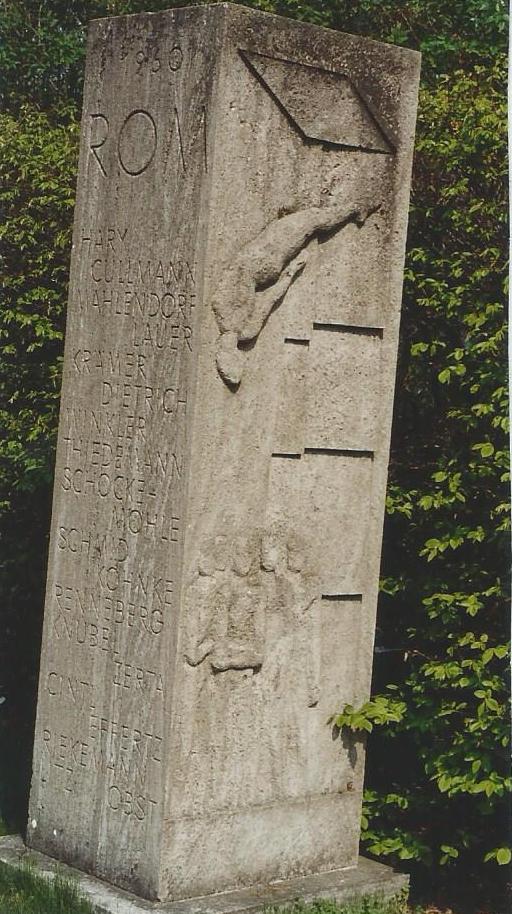 1. Berlin 1936: Reliefs rechts und links mit den Darstellungen Springreiten und Diskuswerferin, an den vier Seiten Namen eingraviert, 2. Los Angeles 1932: Reliefs rechts und links mit den Darstellungen Rudern und Gewichtheben, Namen an der Frontseite eingraviert, 3. Amsterdam 1928, Reliefs rechts und links mit den Darstellungen: Reiten und Fechterinnen, Namen an der Frontseite eingraviert,
