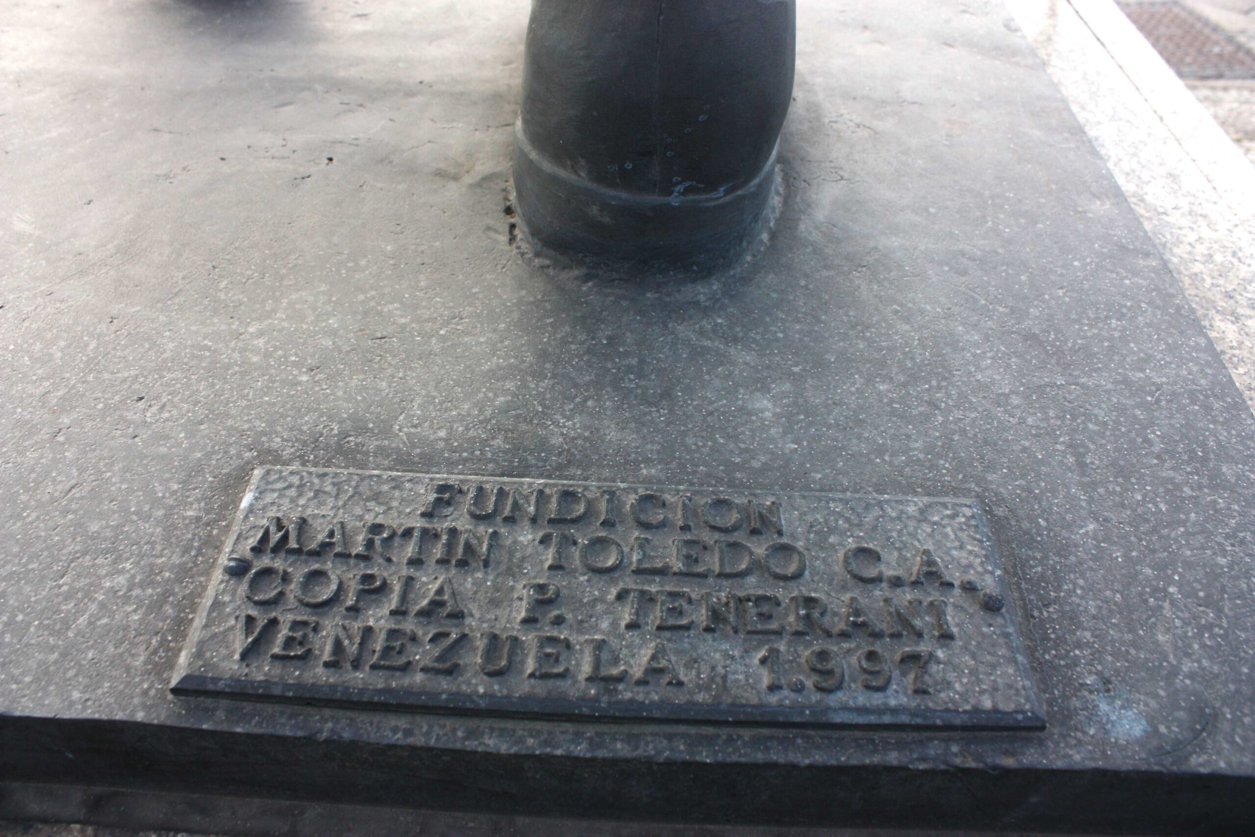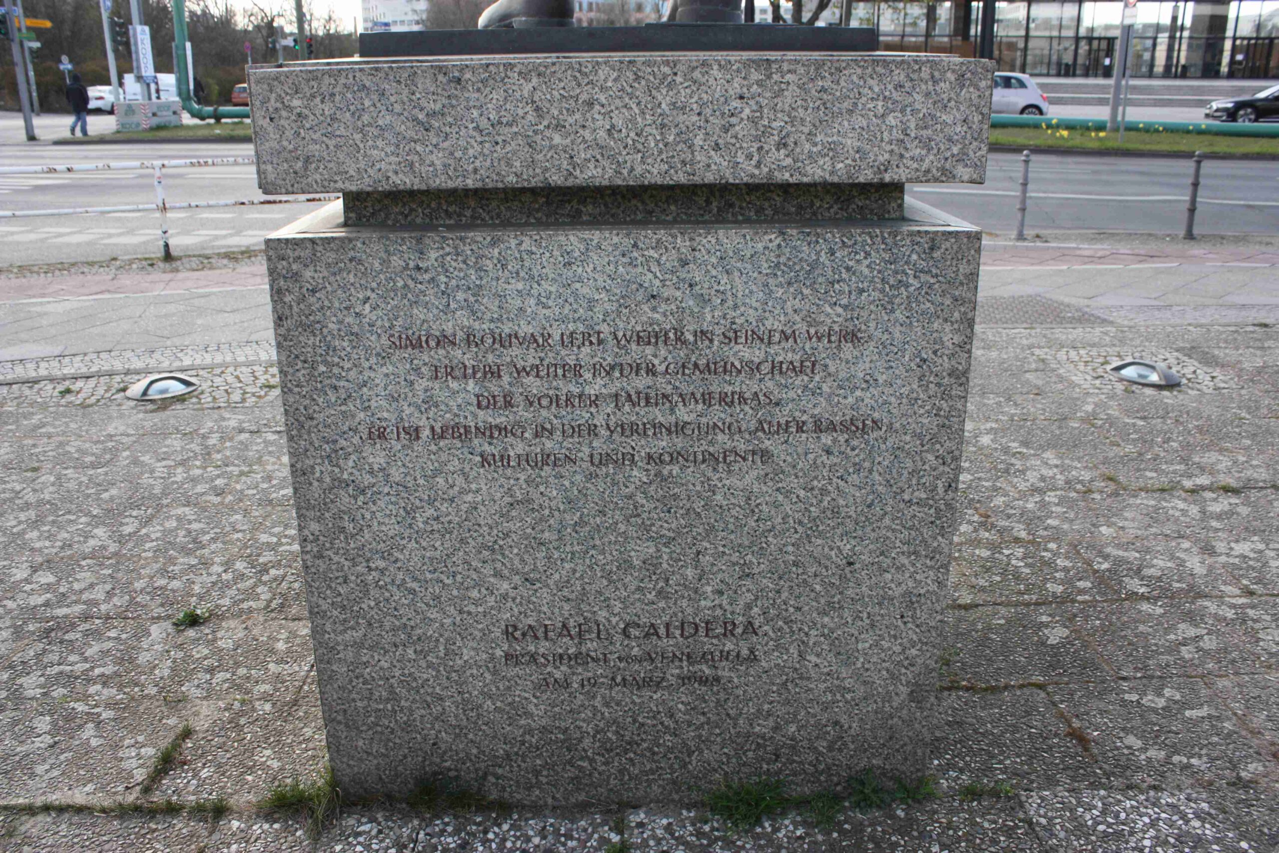 »SIMON BOLIVAR LEBT WEITER IN SEINEM WERK. / ER LEBT WEITER IN DER GEMEINSCHAFT / DER VÖLKER LATEINAMERIKAS. / ER IST LEBENDIG IN DER VEREINIGUNG ALLER RASSEN, / KULTUREN UND KONTINENTE. / RAFAEL CALDERA / PRÄSIDENT VON VENEZUELA / AM 19. MÄRZ 1998«