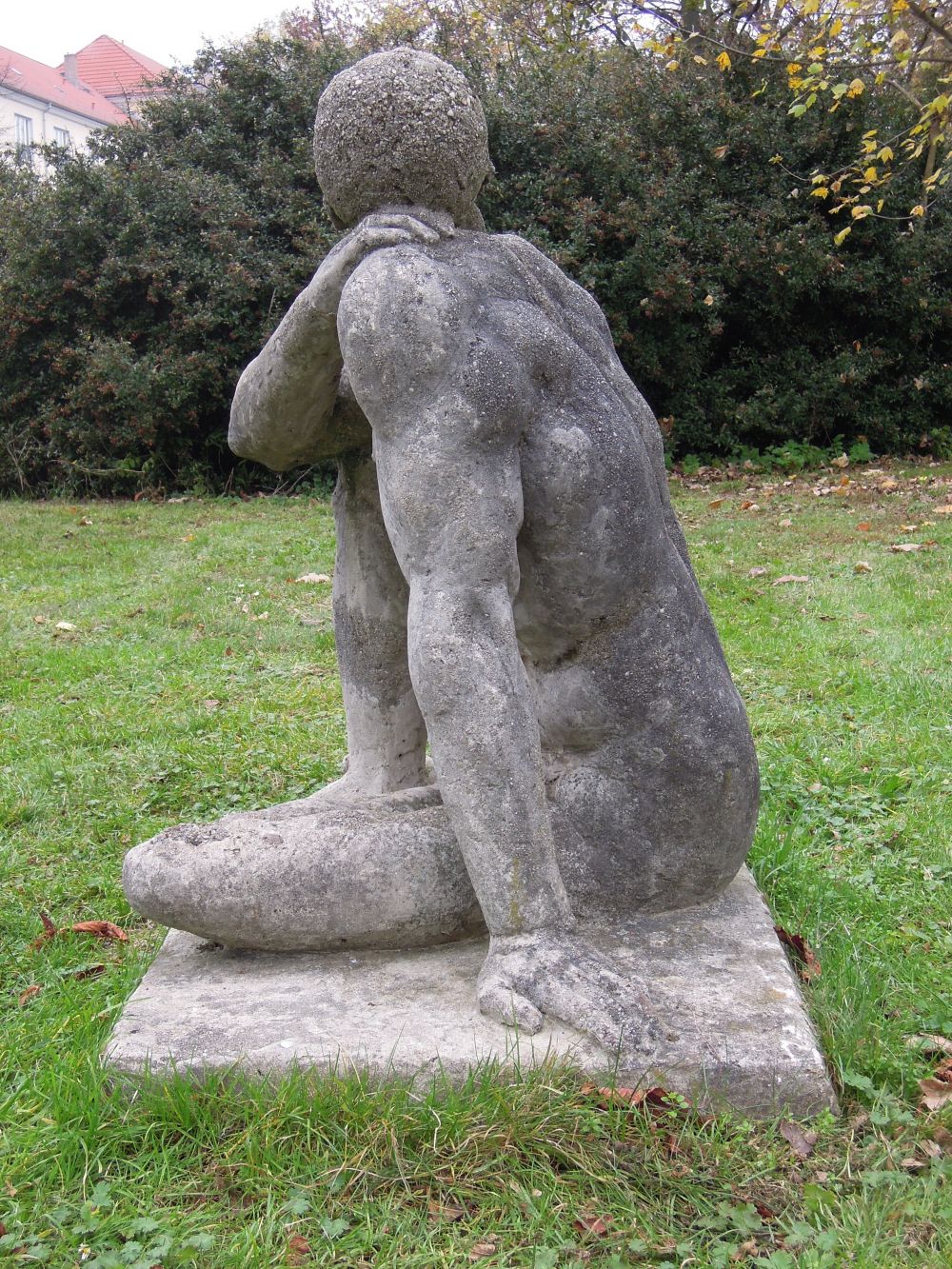 Die Betonguss-Skulptur „Der Sitzende“ von Manfred Salow befindet sich erst seit 1998 an diesem Ort. Sie stand ursprünglich seit 1978 vor der Kaufhalle in der Breite Straße, am historischen Dorfanger von Pankow. Aufgrund des Neubaus eines Einkaufszentrums anstelle der Kaufhalle nach der Wende musste die Plastik weichen; sie wurde nach dem heutigen Standort umgesetzt (Jürgen Tomisch).