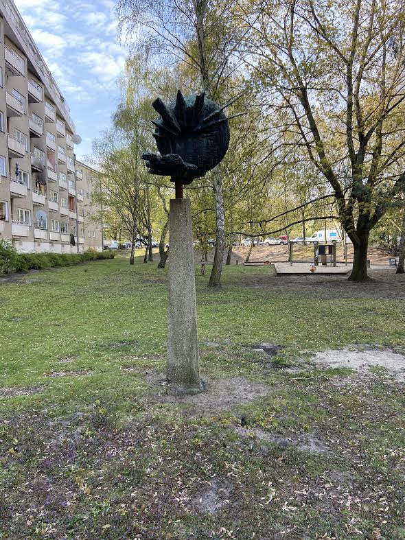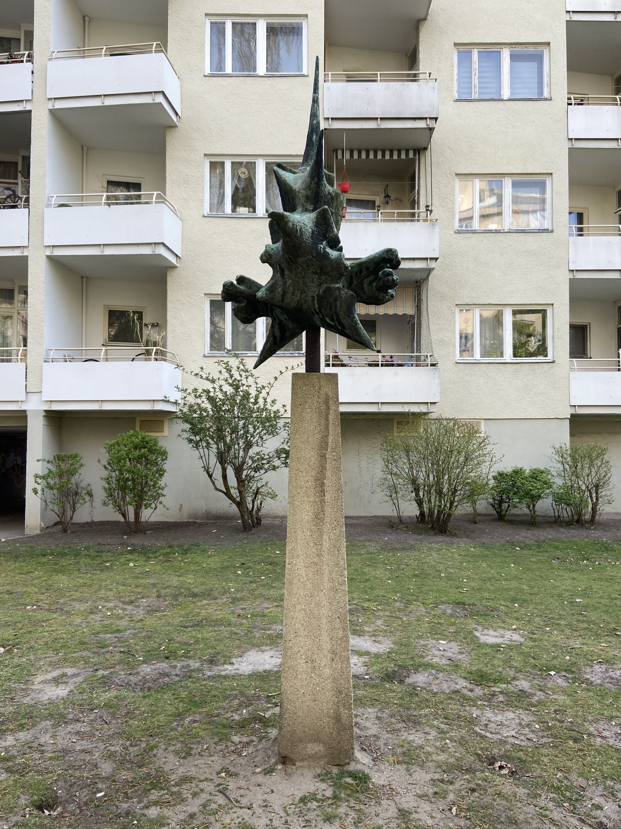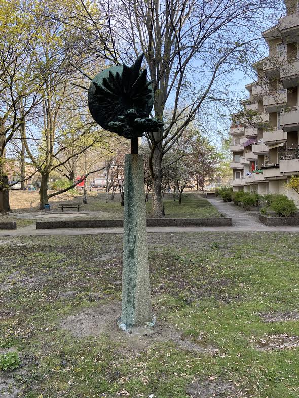 Die Plastiken wurde 1963 aufgestellt. Sie dienen der Verschönerung der Wohnsiedlung, welche unter Denkmalschutz steht (Tabita Rupprecht).