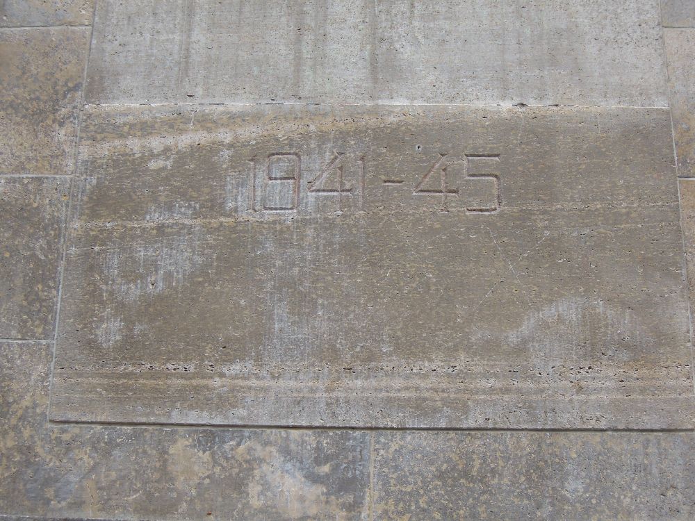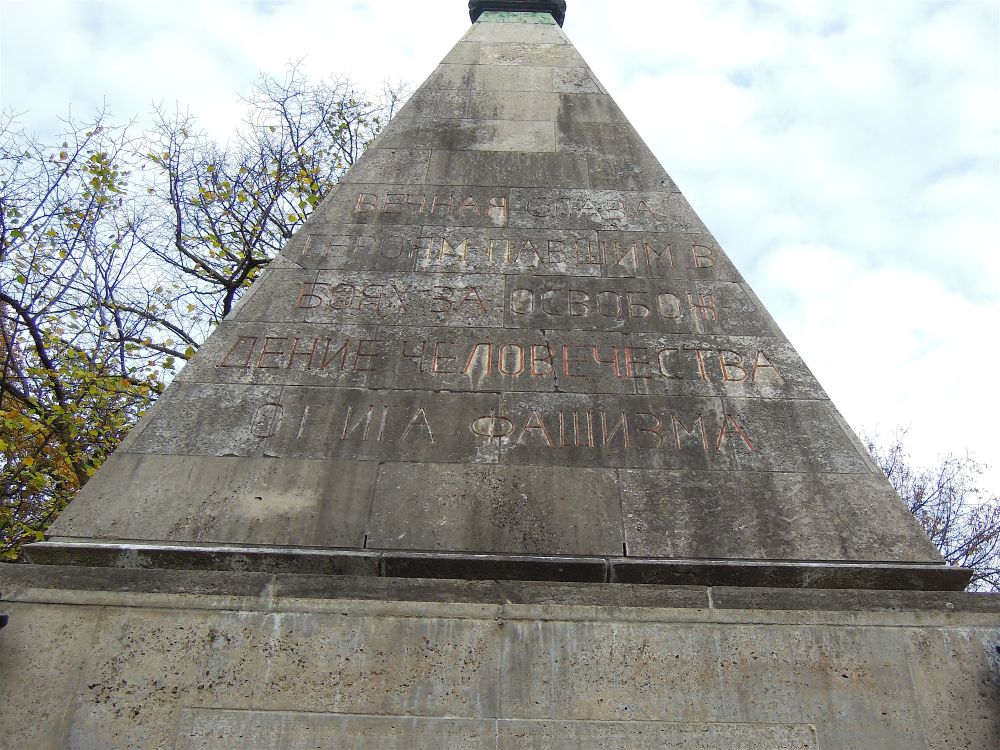 »ВЕЧНАЯ СЛАВА / ГЕРОЯМ ПАВШИМ В / БОЯХ ЗА ОСВОБОҖ- / ДЕНИЕ ЧЕЛОВЕЧЕСТВА / ОТ ИГА ФАШИЗМА / 1941-45«