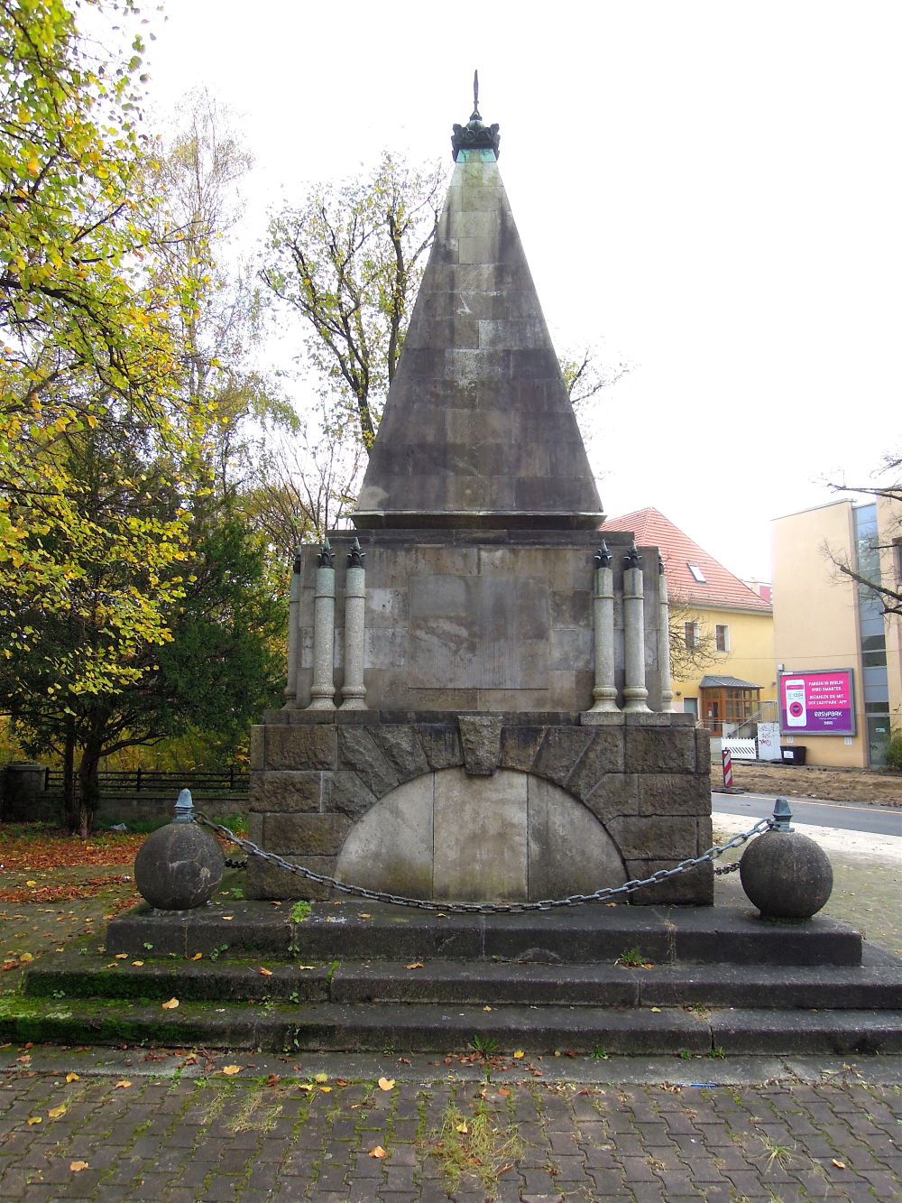 Das Ehrenmal erinnert an die in den letzten Tagen des Zweiten Weltkriegs gefallenen Angehörigen der Sowjetischen Streitkräfte. Es wurde 1947-1948 errichtet.
