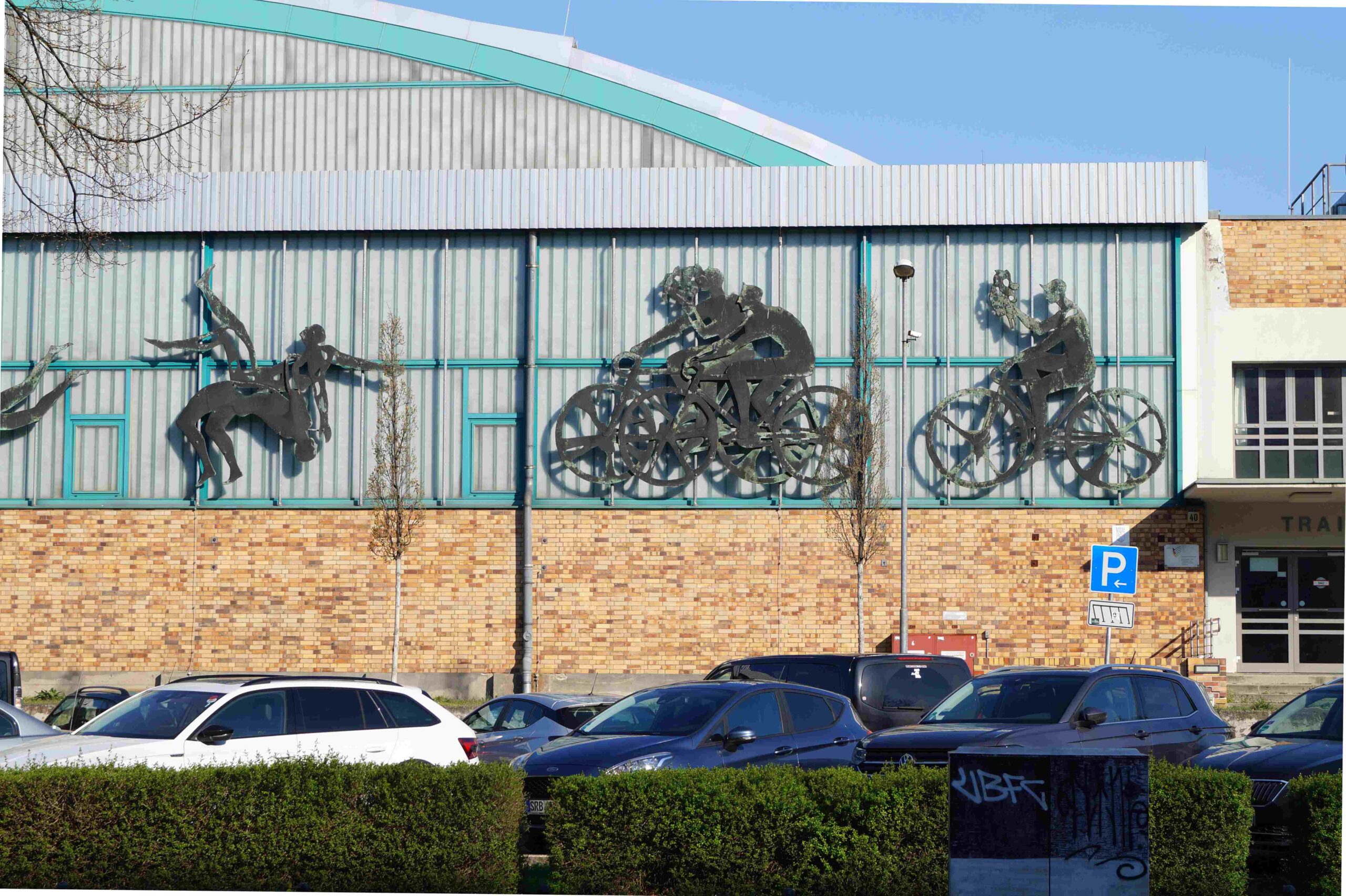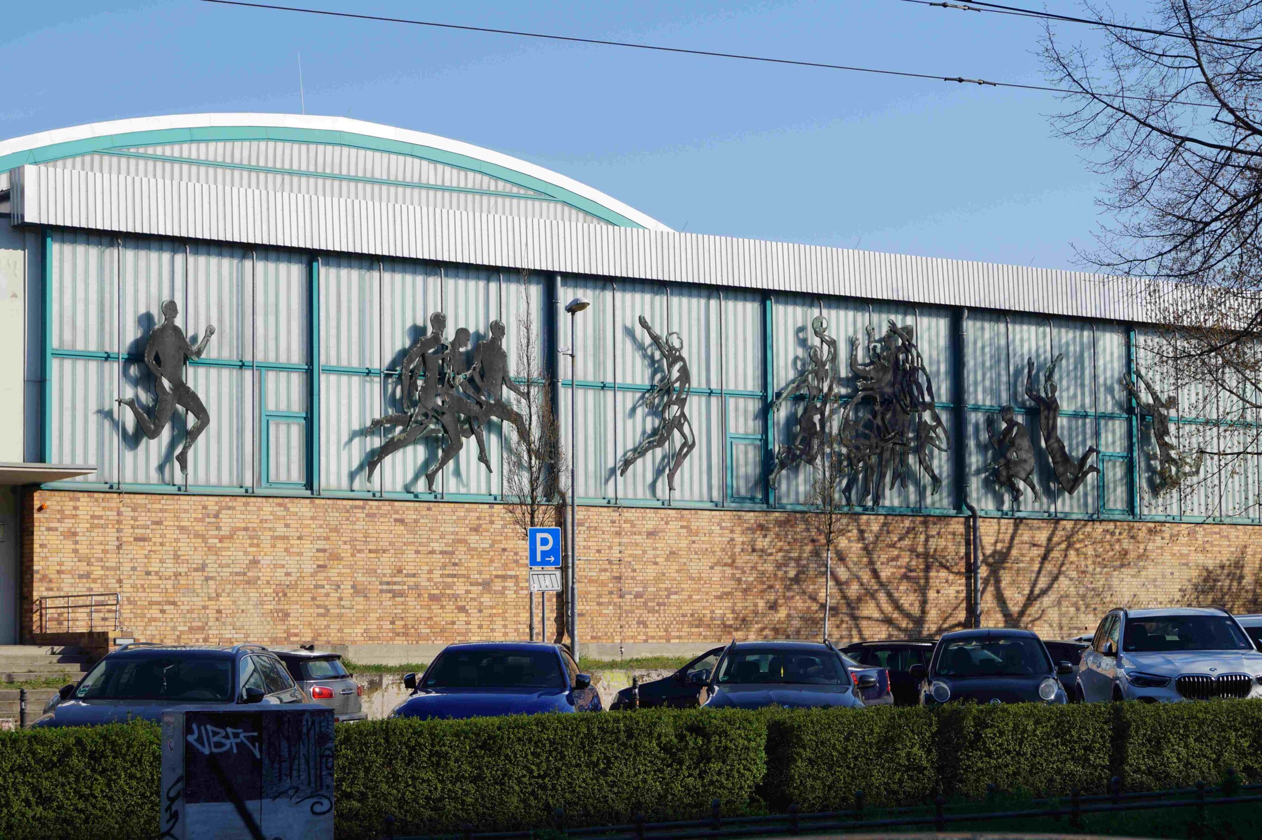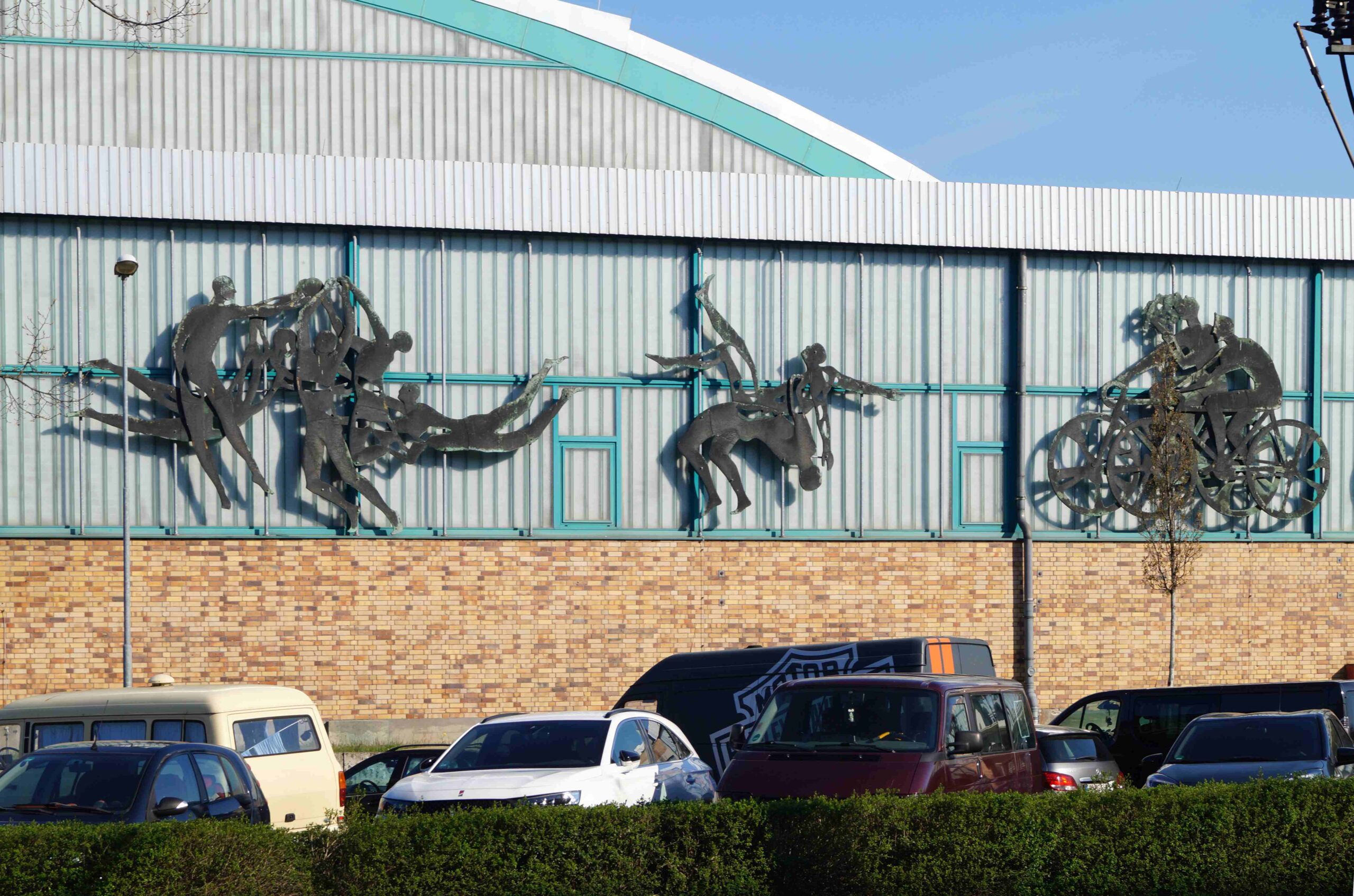 Die südliche Fassade an dem Trainingshallenkomplex des Sportforums Berlin ist über die gesamte Fassadenbreite mit insgesamt vierzehn Darstellungen von einzelnen Sportlern und Sportlergruppen versehen. Im Einzelnen handelt es sich beispielsweise um eine Kunstturnerin auf dem Schwebebalken, Sportler mit Reifen, Radfahrer, zwei Gruppen mit Ballspielern, Läufer und Boxer (Nicola Vösgen).